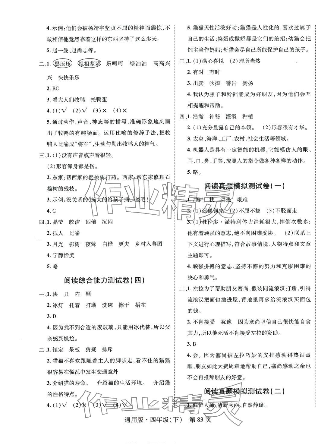 《2024年优化夺标语文阅读试卷四年级语文下册》