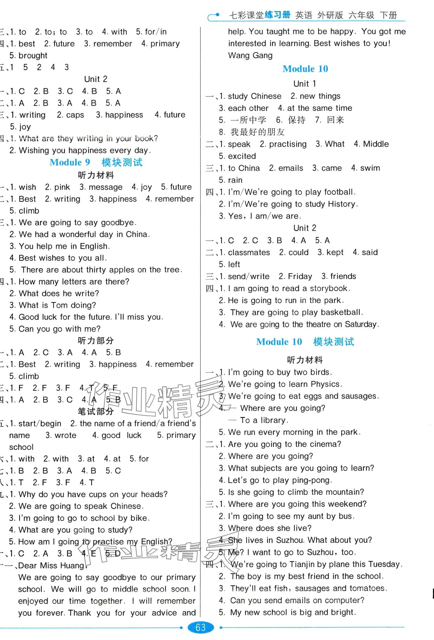 注:目前有些书本章节名称可能整理的还不是很完善,但都是按照顺序排列的,请同学们按照顺序仔细查找。练习册 2024年七彩课堂六年级英语下册外研版 答案主要是用来给同学们做完题方便对答案用的,请勿直接抄袭。