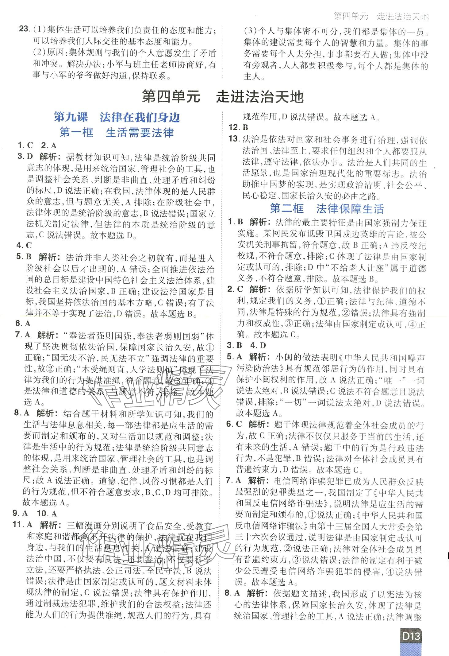 注:目前有些书本章节名称可能整理的还不是很完善,但都是按照顺序排列的,请同学们按照顺序仔细查找。练习册 2024年阳光计划七年级道德与法治下册人教版 答案主要是用来给同学们做完题方便对答案用的,请勿直接抄袭。