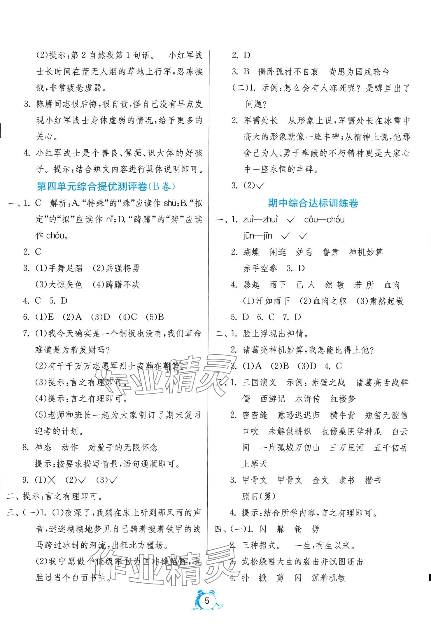 注:目前有些书本章节名称可能整理的还不是很完善,但都是按照顺序排列的,请同学们按照顺序仔细查找。练习册 2024年单元双测全优测评卷五年级语文下册人教版 答案主要是用来给同学们做完题方便对答案用的,请勿直接抄袭。