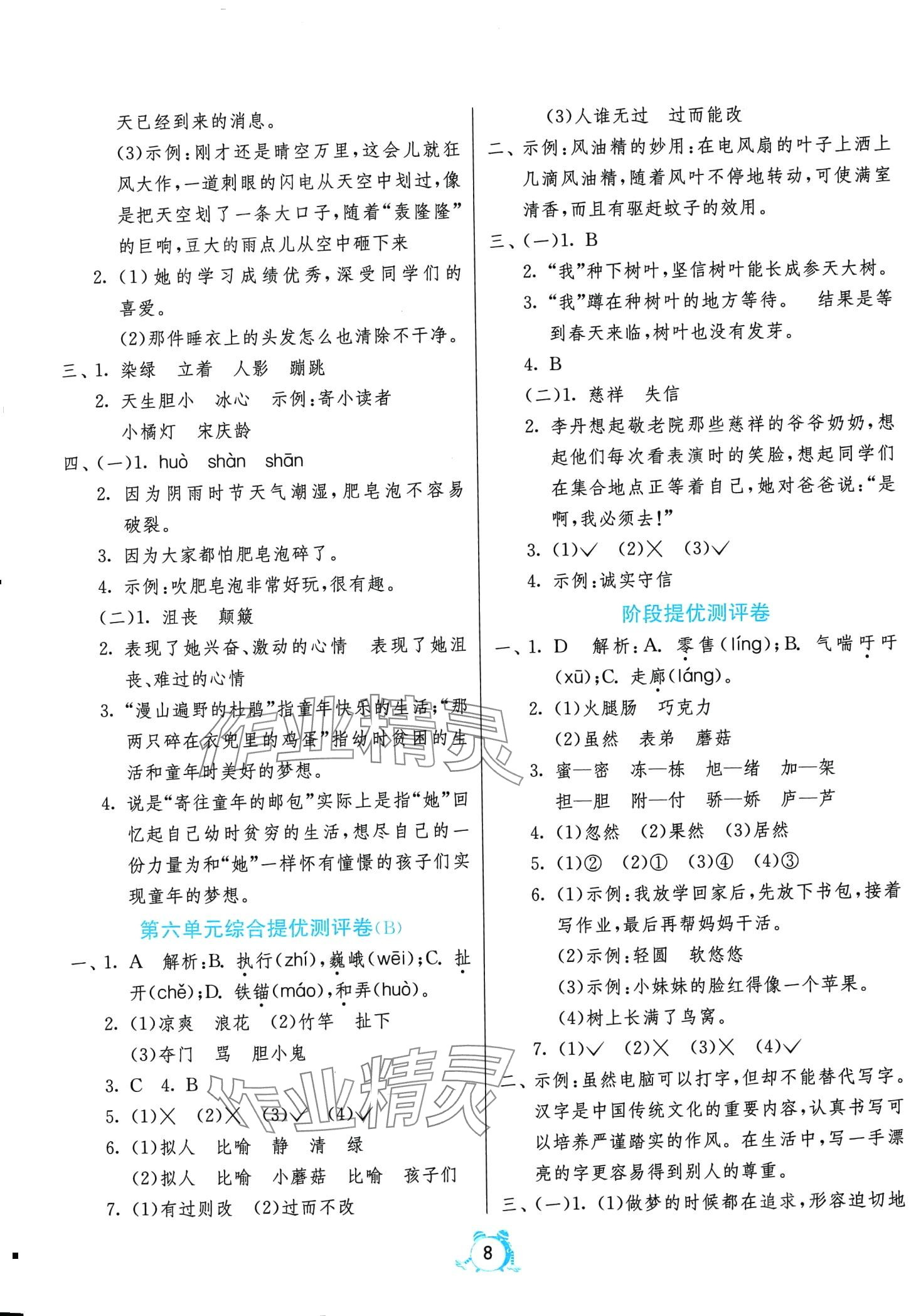 注:目前有些书本章节名称可能整理的还不是很完善,但都是按照顺序排列的,请同学们按照顺序仔细查找。练习册 2024年单元双测全优测评卷三年级语文下册人教版 答案主要是用来给同学们做完题方便对答案用的,请勿直接抄袭。
