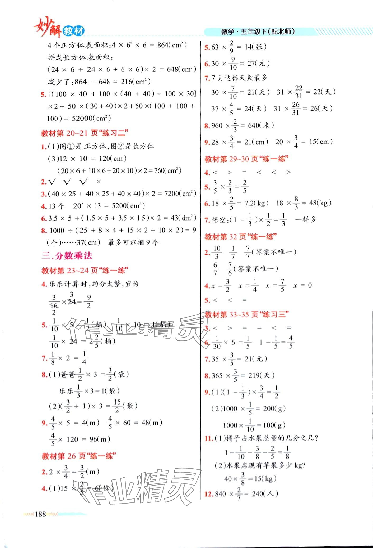 2024年黄冈金牌之路妙解教材五年级数学下册北师大版