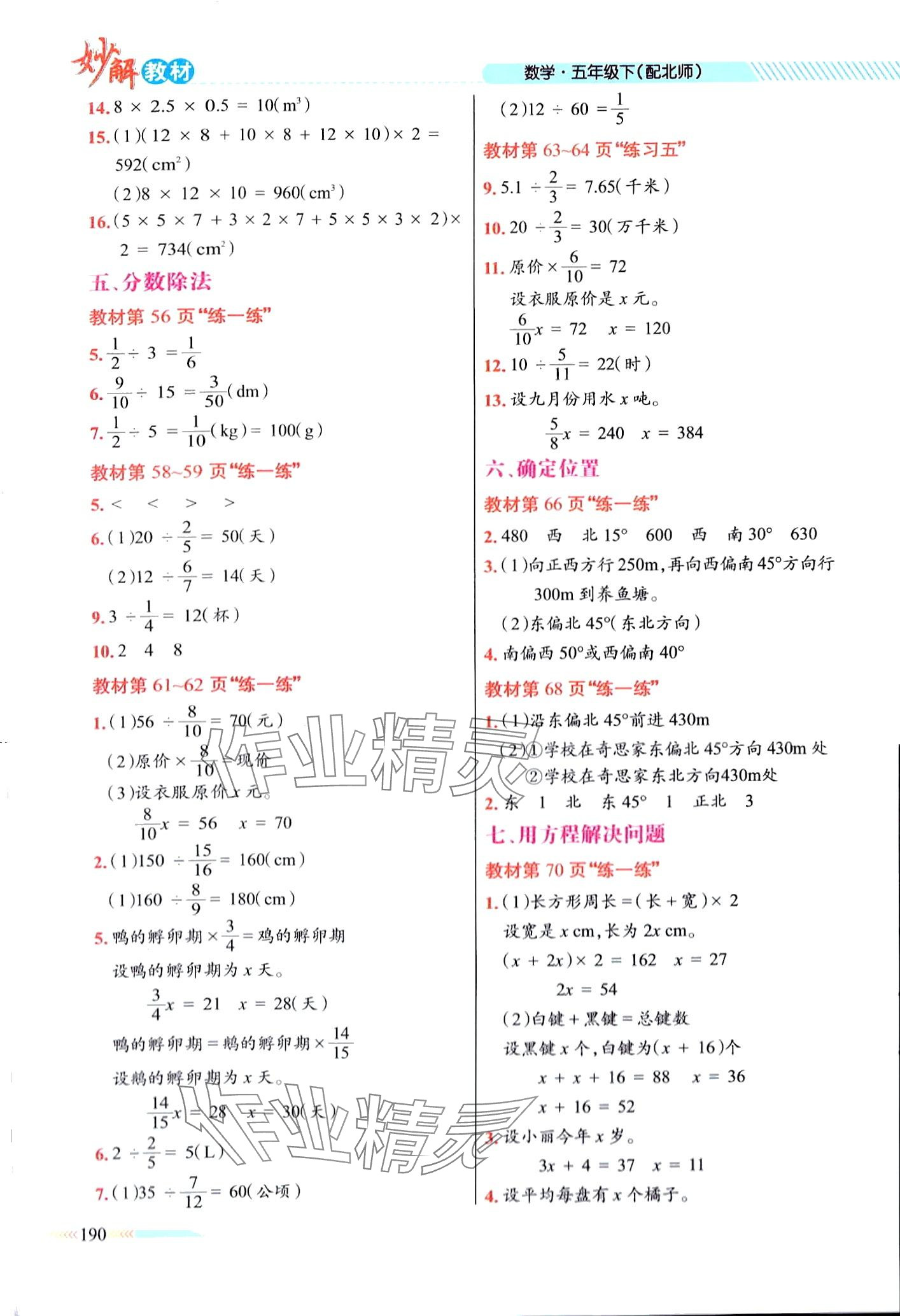 注:目前有些书本章节名称可能整理的还不是很完善,但都是按照顺序排列的,请同学们按照顺序仔细查找。练习册 2024年黄冈金牌之路妙解教材五年级数学下册北师大版 答案主要是用来给同学们做完题方便对答案用的,请勿直接抄袭。