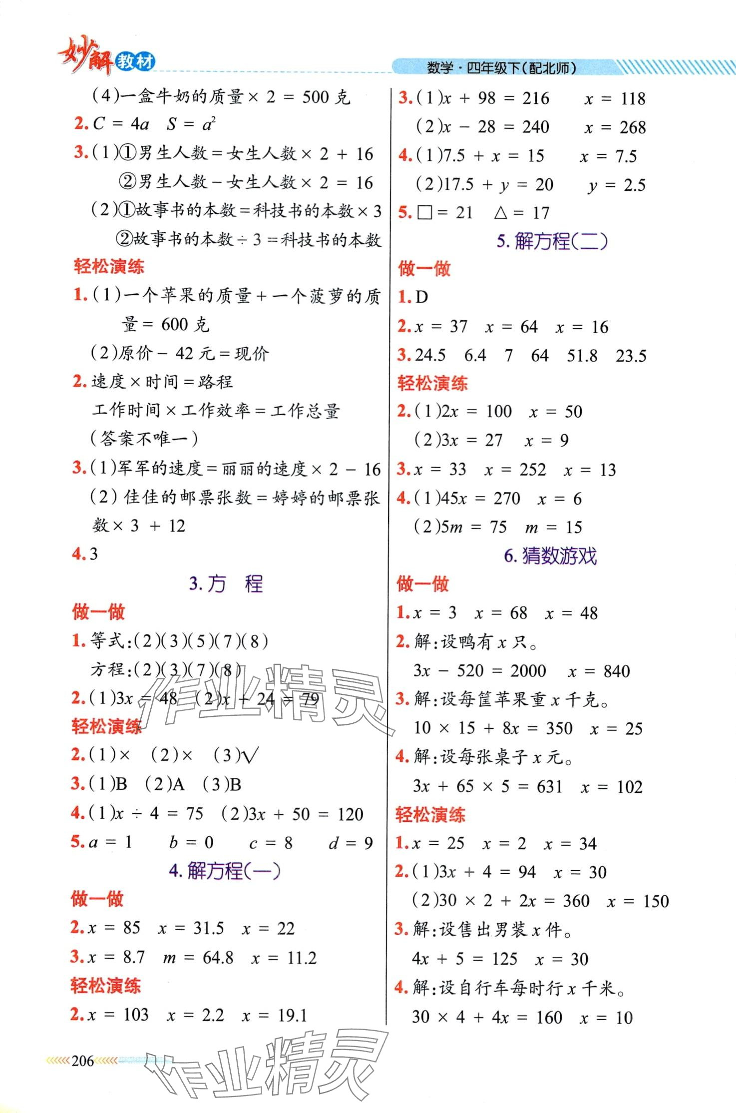 注:目前有些书本章节名称可能整理的还不是很完善,但都是按照顺序排列的,请同学们按照顺序仔细查找。练习册 2024年黄冈金牌之路妙解教材四年级数学下册北师大版 答案主要是用来给同学们做完题方便对答案用的,请勿直接抄袭。