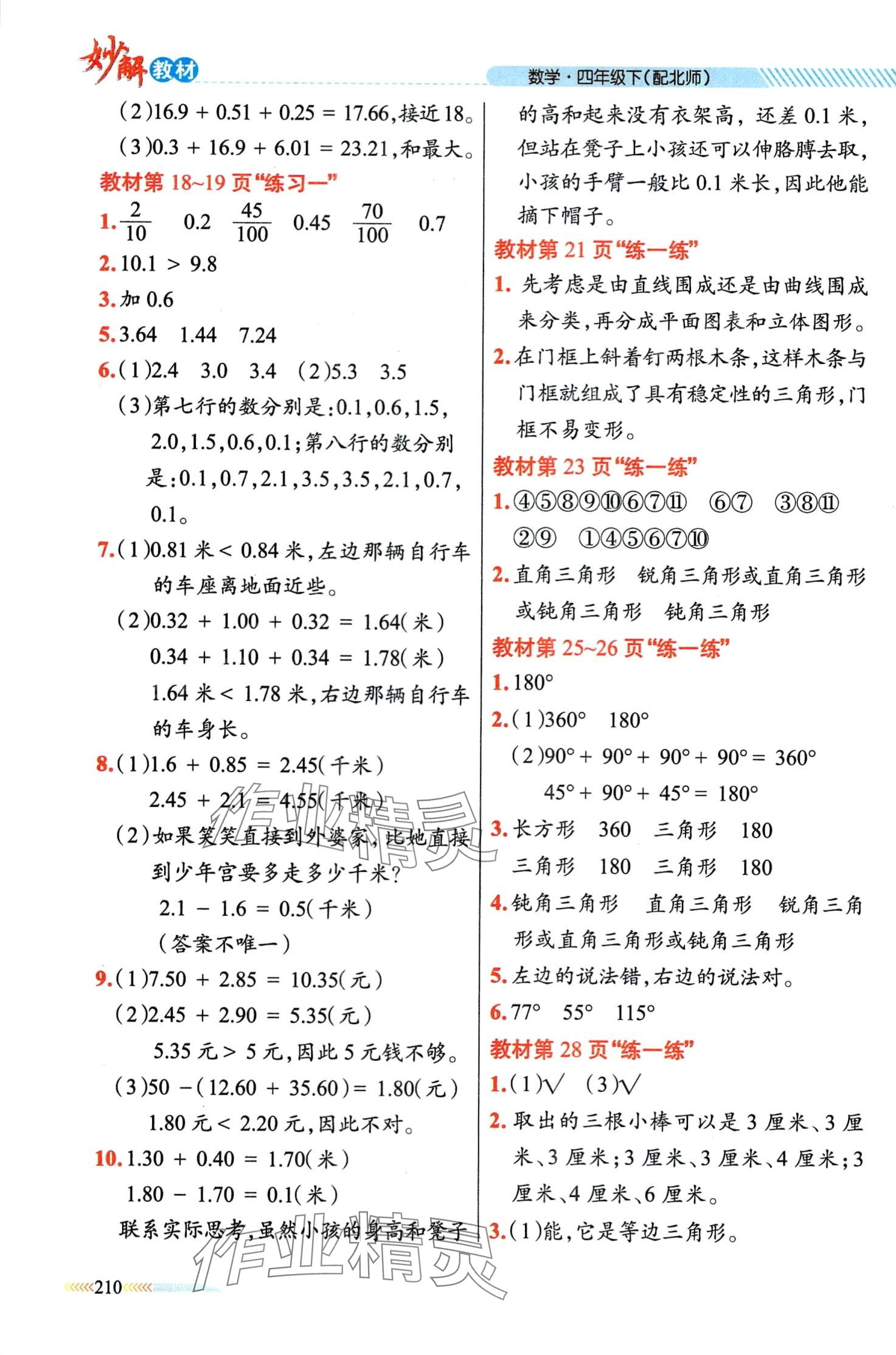 2024年黄冈金牌之路妙解教材四年级数学下册北师大版