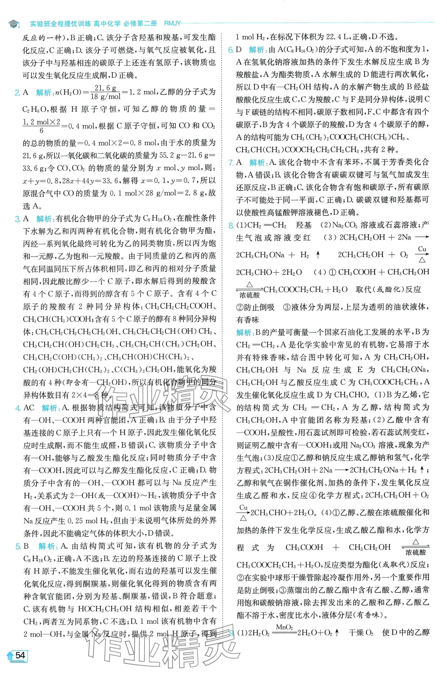 注:目前有些书本章节名称可能整理的还不是很完善,但都是按照顺序排列的,请同学们按照顺序仔细查找。练习册 2024年实验班全程提优训练高中化学必修第二册人教版 答案主要是用来给同学们做完题方便对答案用的,请勿直接抄袭。