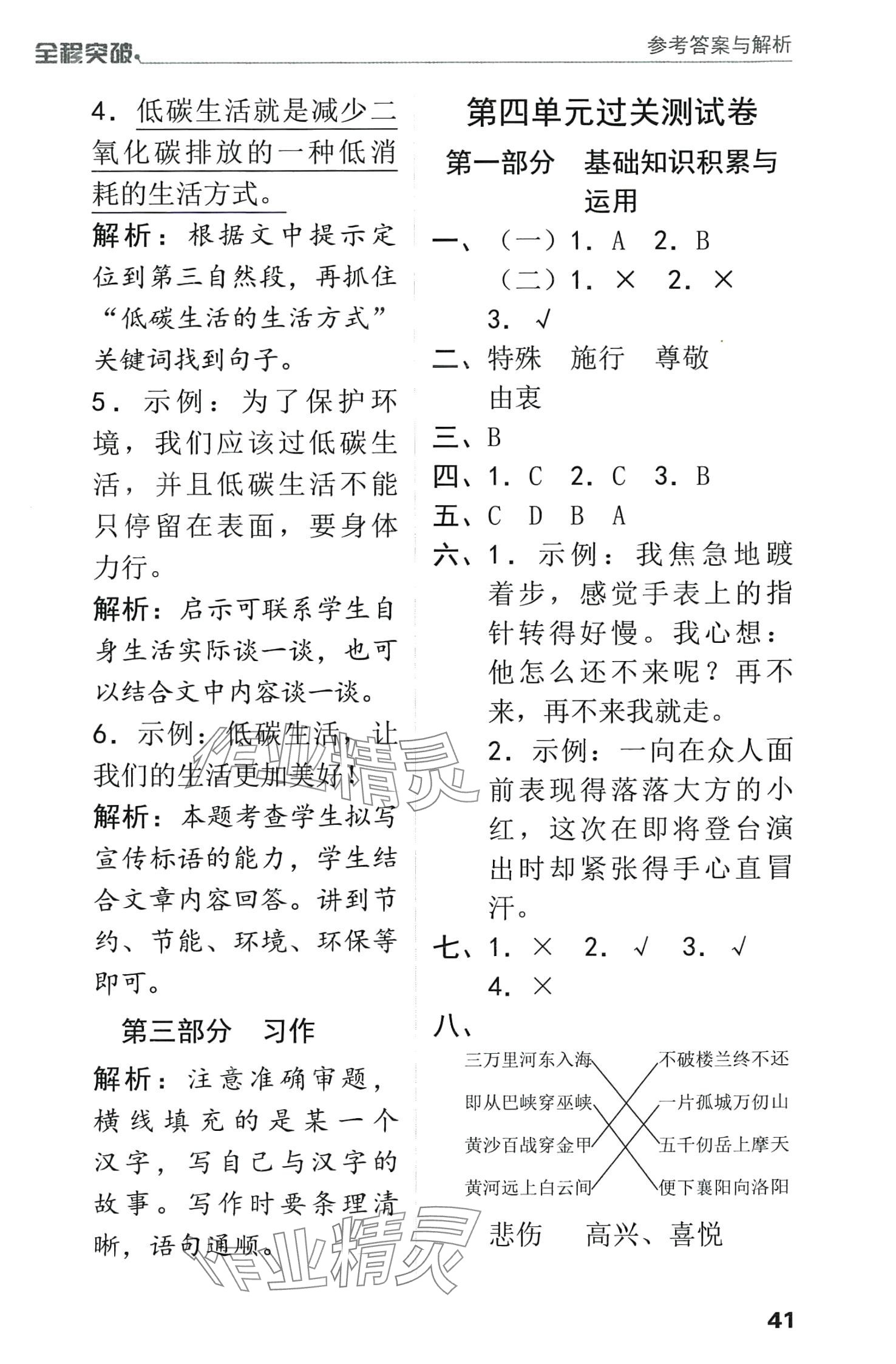 注:目前有些书本章节名称可能整理的还不是很完善,但都是按照顺序排列的,请同学们按照顺序仔细查找。练习册 2024年全程突破五年级语文下册人教版 答案主要是用来给同学们做完题方便对答案用的,请勿直接抄袭。