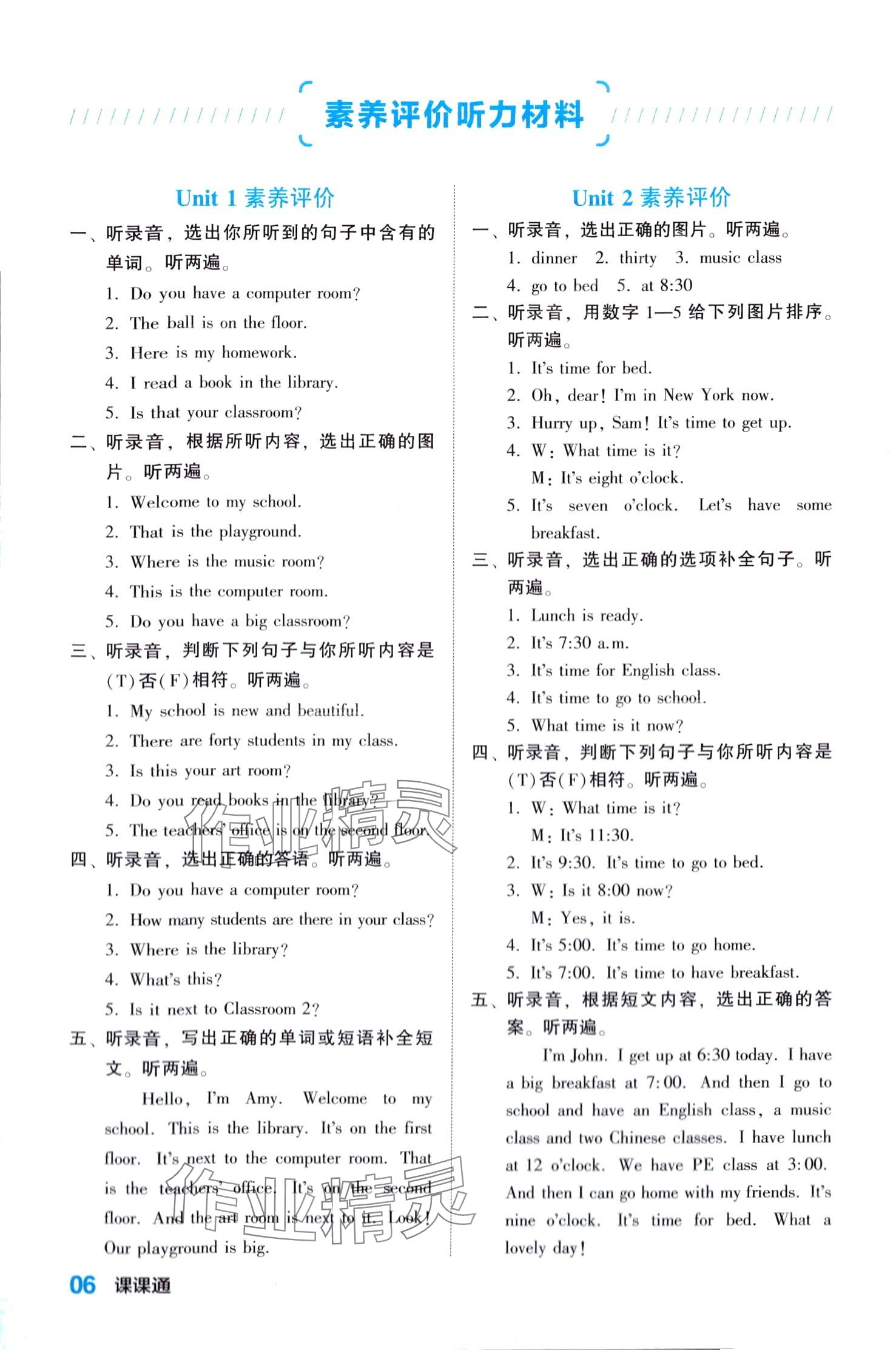注:目前有些书本章节名称可能整理的还不是很完善,但都是按照顺序排列的,请同学们按照顺序仔细查找。练习册 2024年课课通同步随堂检测四年级英语下册人教版 答案主要是用来给同学们做完题方便对答案用的,请勿直接抄袭。