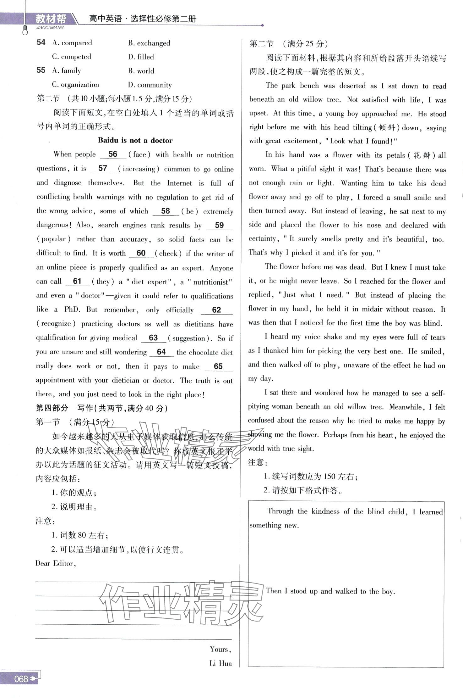 注:目前有些书本章节名称可能整理的还不是很完善,但都是按照顺序排列的,请同学们按照顺序仔细查找。练习册 2024年教材课本高中英语选择性必修第二册译林版 答案主要是用来给同学们做完题方便对答案用的,请勿直接抄袭。
