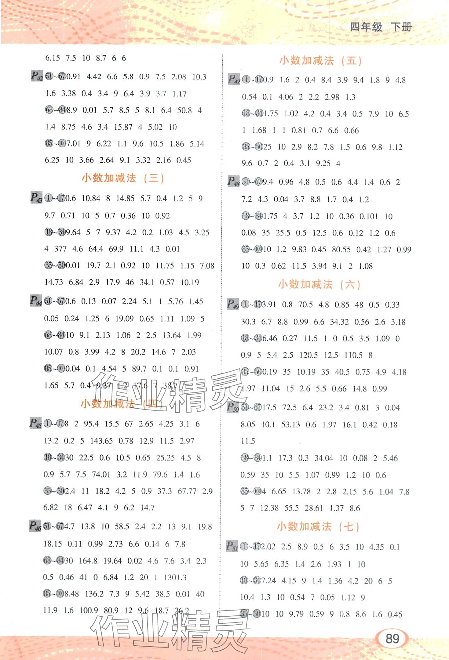 2024年每天100道口算题卡河北少年儿童出版社四年级数学下册人教版