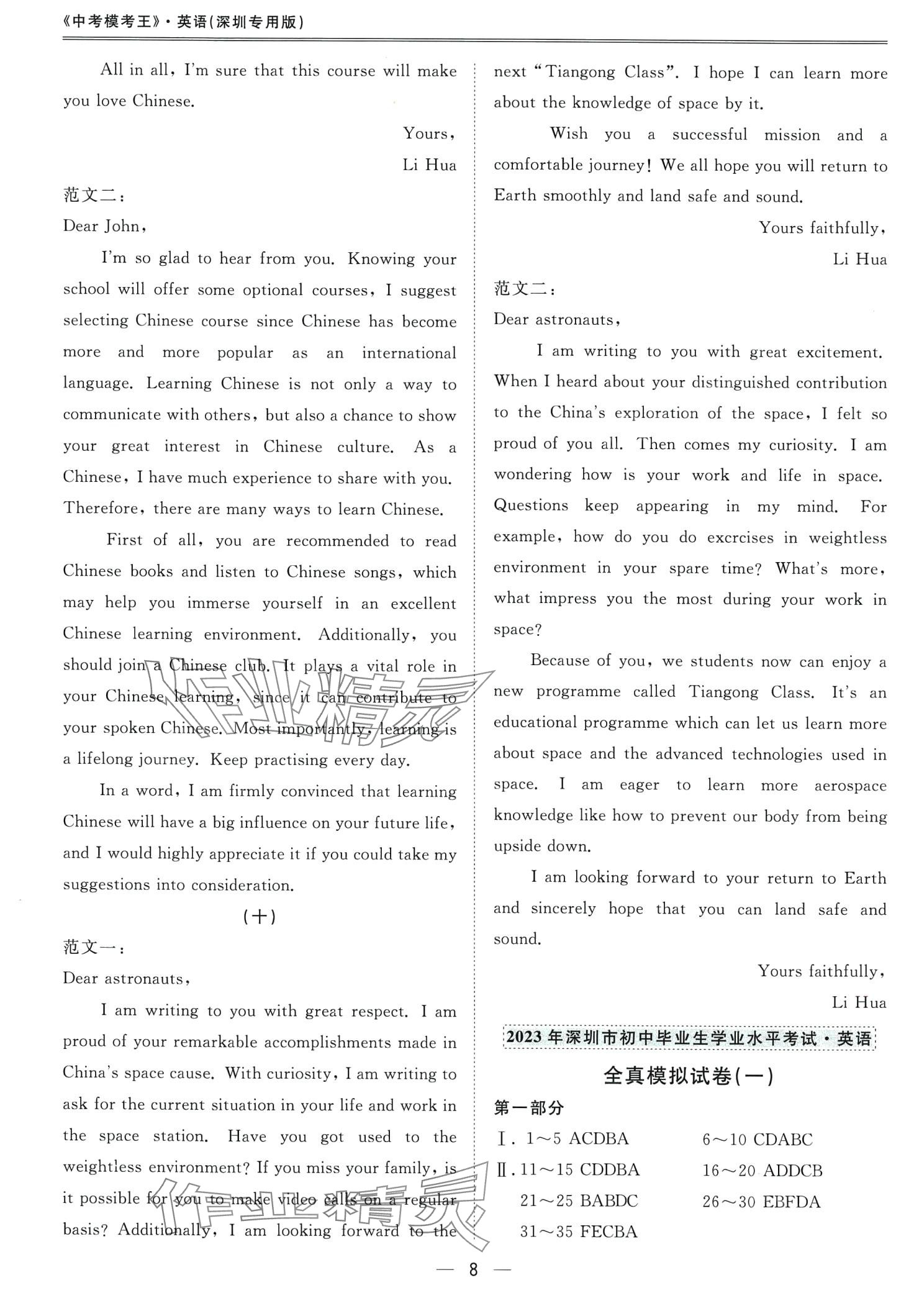 《2023年中考模考王全真模拟试卷英语深圳专版》