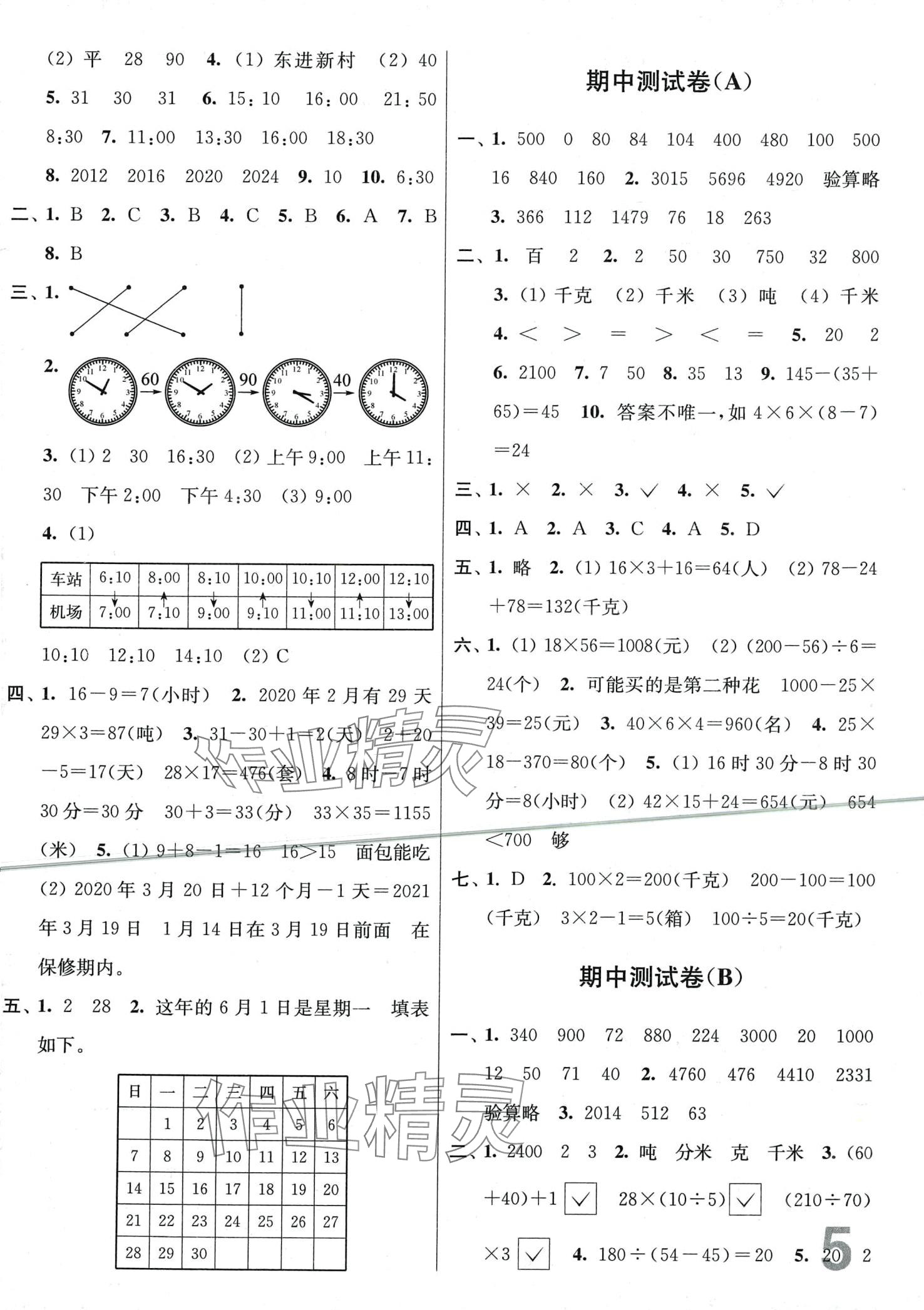 《2024年随堂测试卷江苏凤凰美术出版社三年级数学下册苏教版》