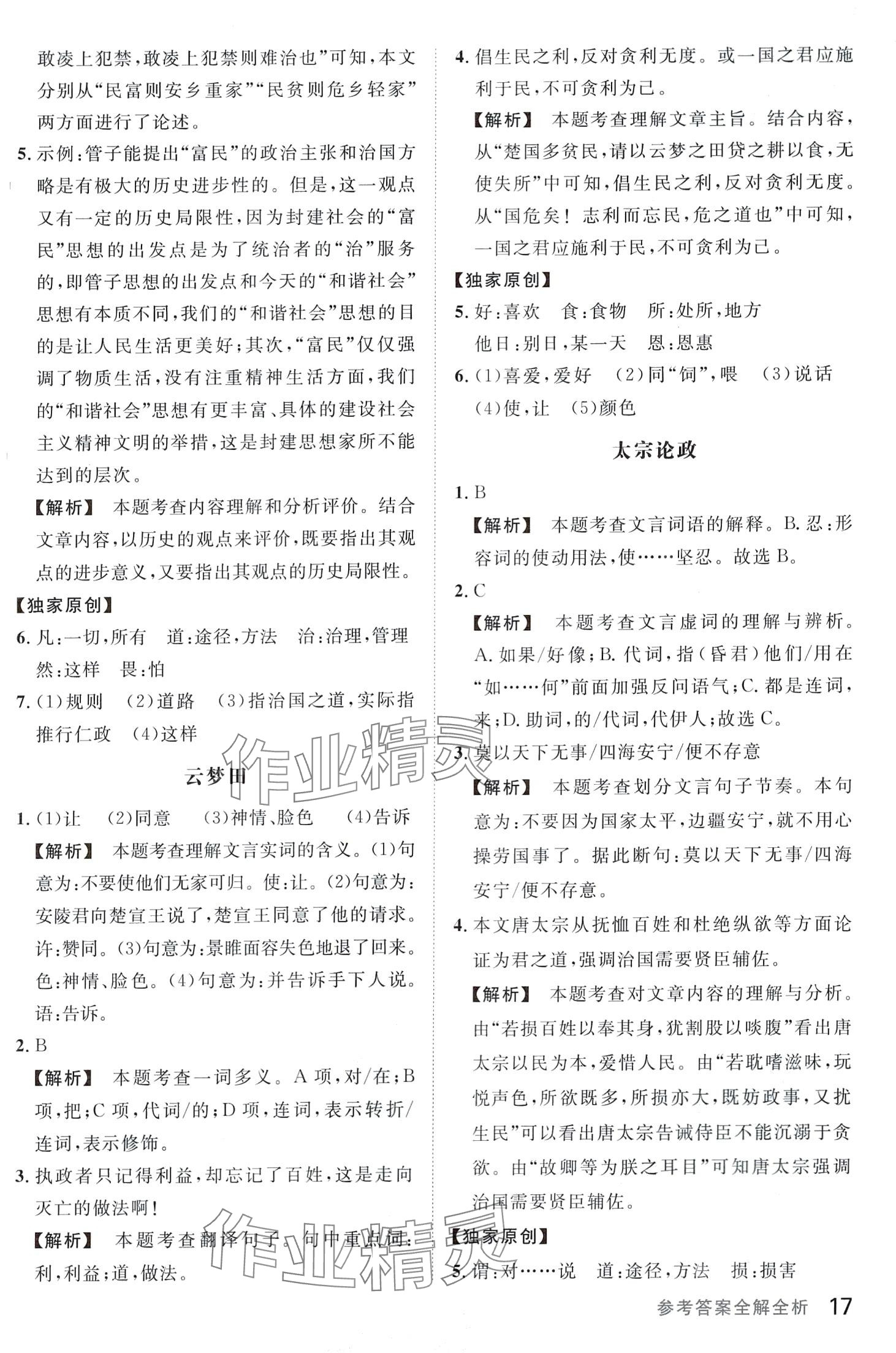 注:目前有些书本章节名称可能整理的还不是很完善,但都是按照顺序排列的,请同学们按照顺序仔细查找。练习册 2024年新语思课外文言文阅读八年级语文人教版 答案主要是用来给同学们做完题方便对答案用的,请勿直接抄袭。