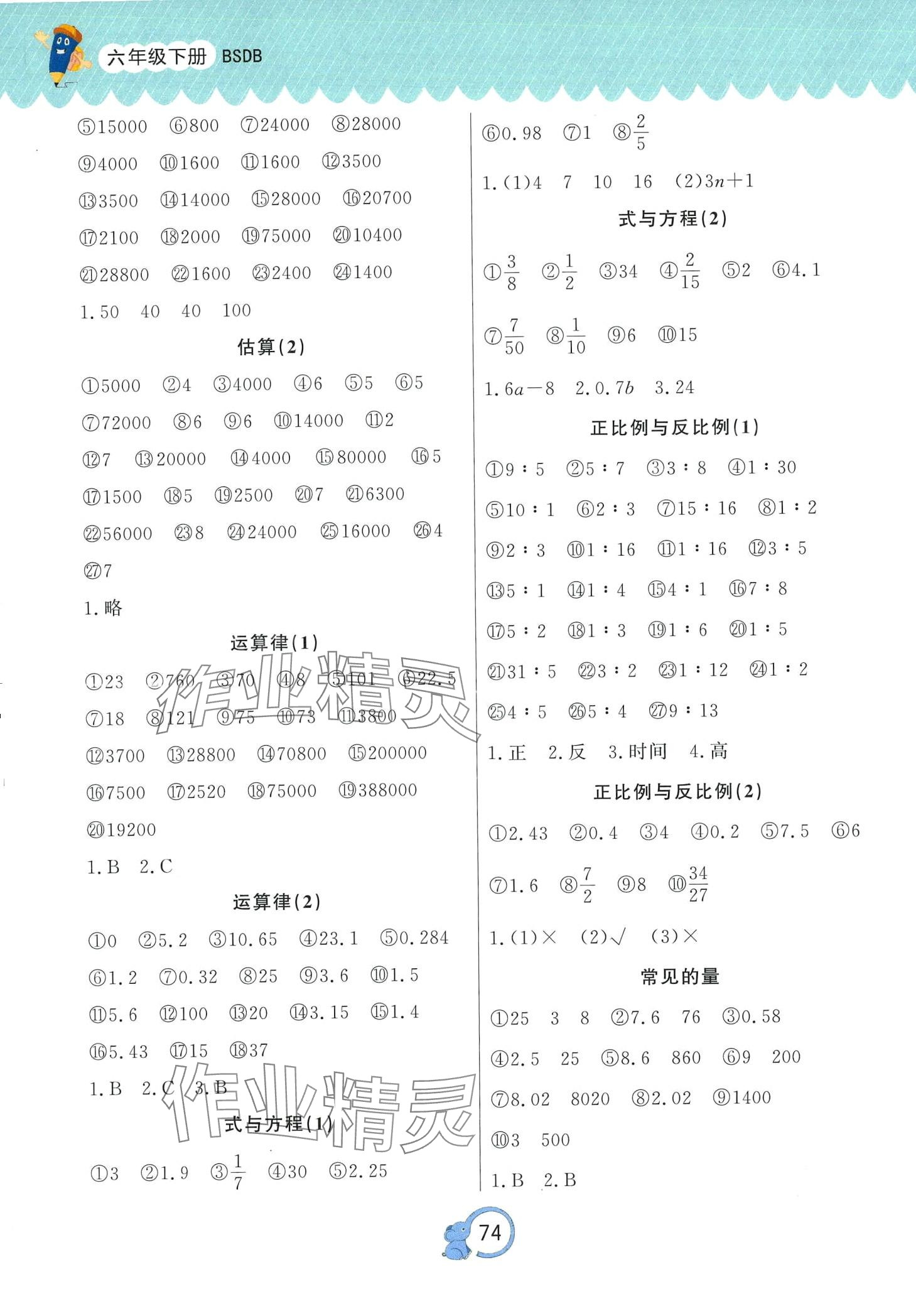 注:目前有些书本章节名称可能整理的还不是很完善,但都是按照顺序排列的,请同学们按照顺序仔细查找。练习册 2024年课课帮口算题卡天天练六年级数学下册北师大版 答案主要是用来给同学们做完题方便对答案用的,请勿直接抄袭。