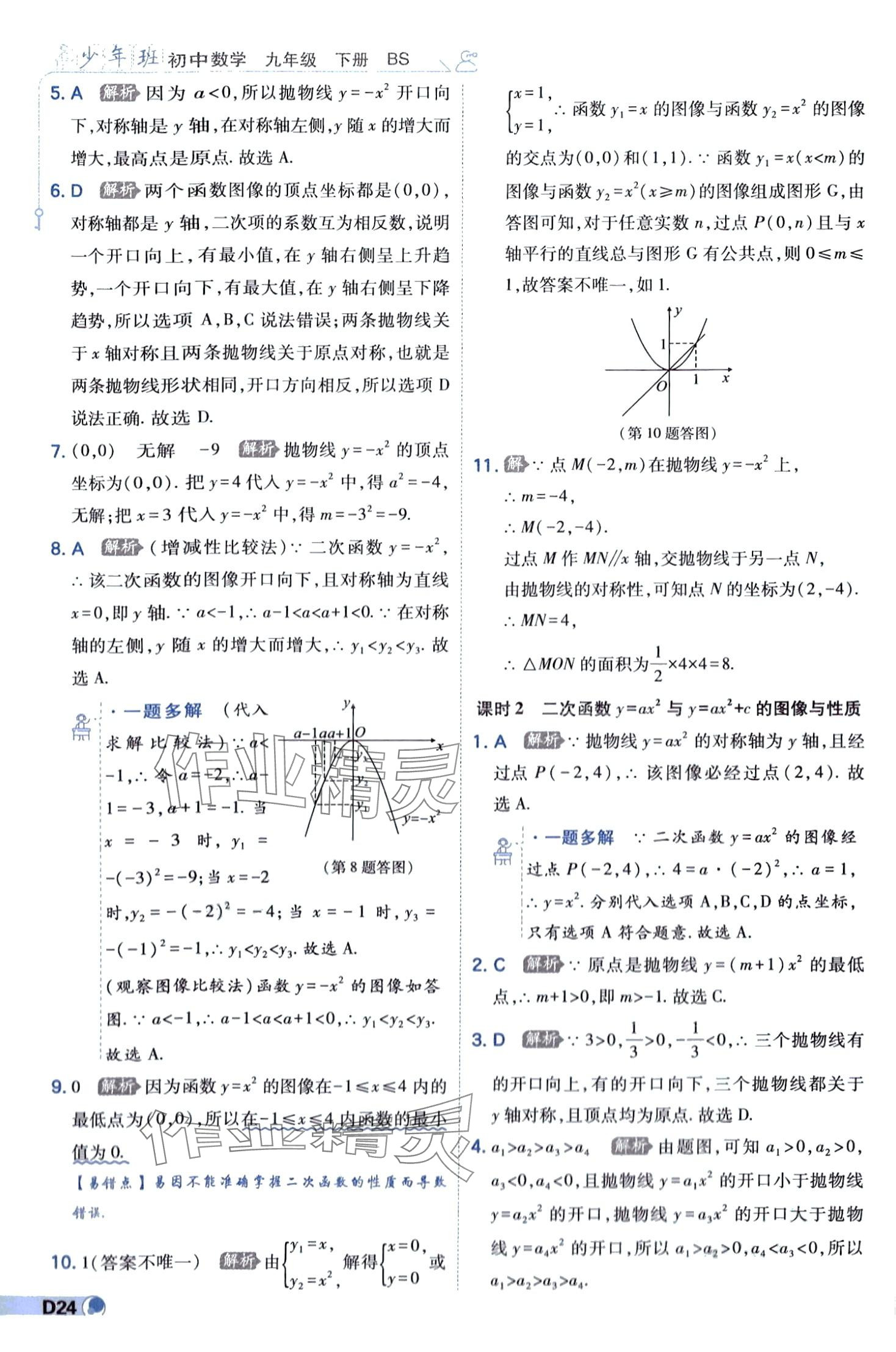 注:目前有些书本章节名称可能整理的还不是很完善,但都是按照顺序排列的,请同学们按照顺序仔细查找。练习册 2024年少年班九年级数学下册北师大版 答案主要是用来给同学们做完题方便对答案用的,请勿直接抄袭。