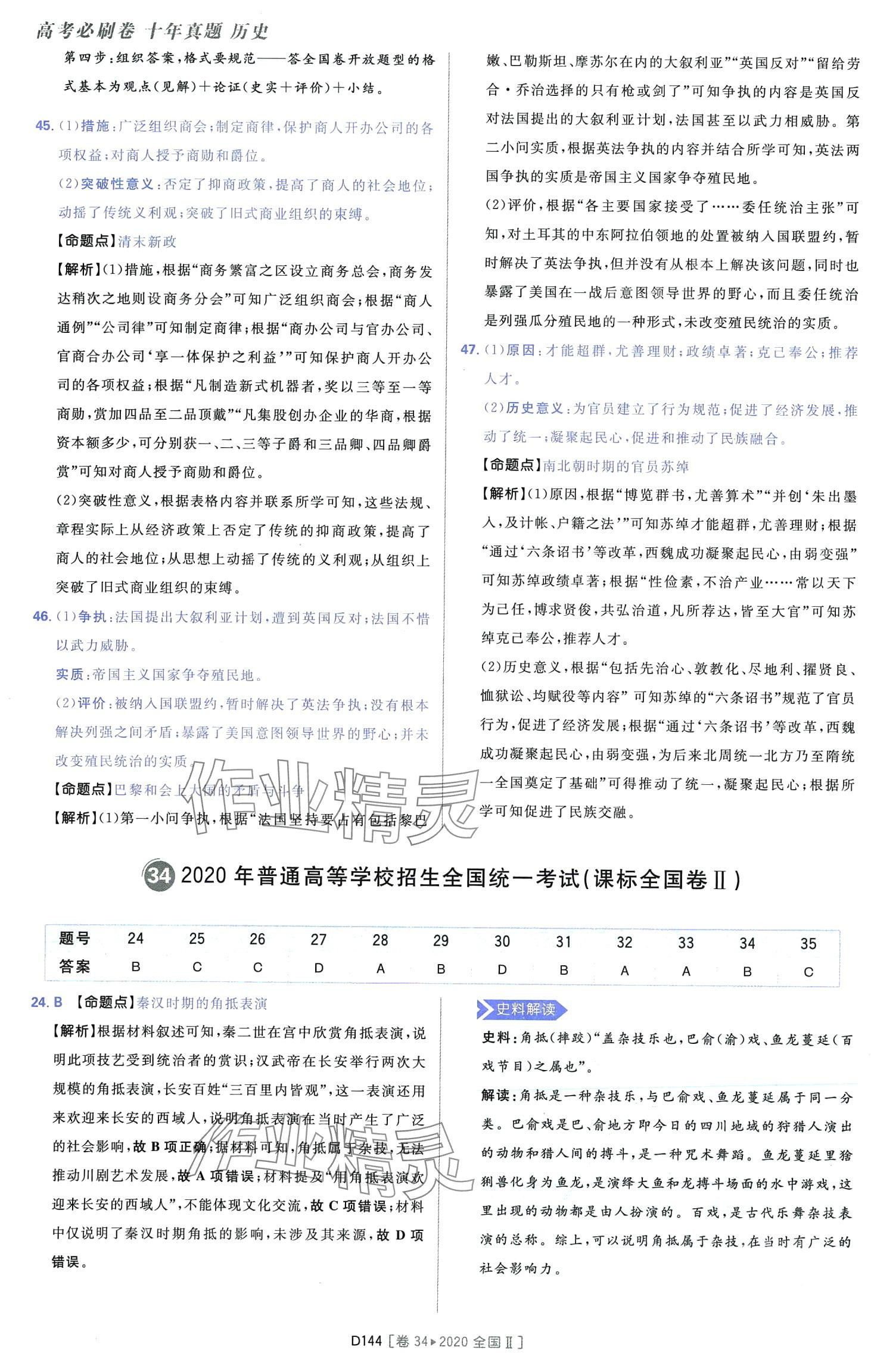 注:目前有些书本章节名称可能整理的还不是很完善,但都是按照顺序排列的,请同学们按照顺序仔细查找。练习册 2024年高考必刷卷十年真题高中历史全一册人教版 答案主要是用来给同学们做完题方便对答案用的,请勿直接抄袭。
