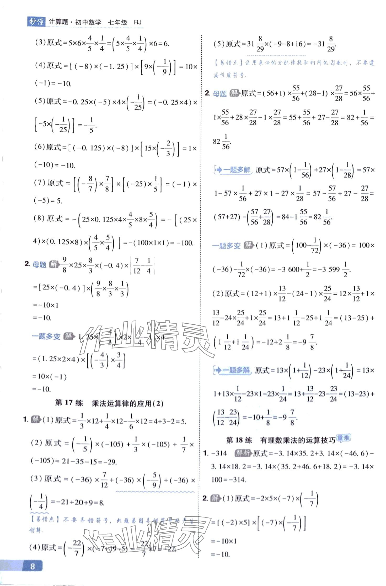 2024年秒懂计算题七年级数学下册人教版 第8页