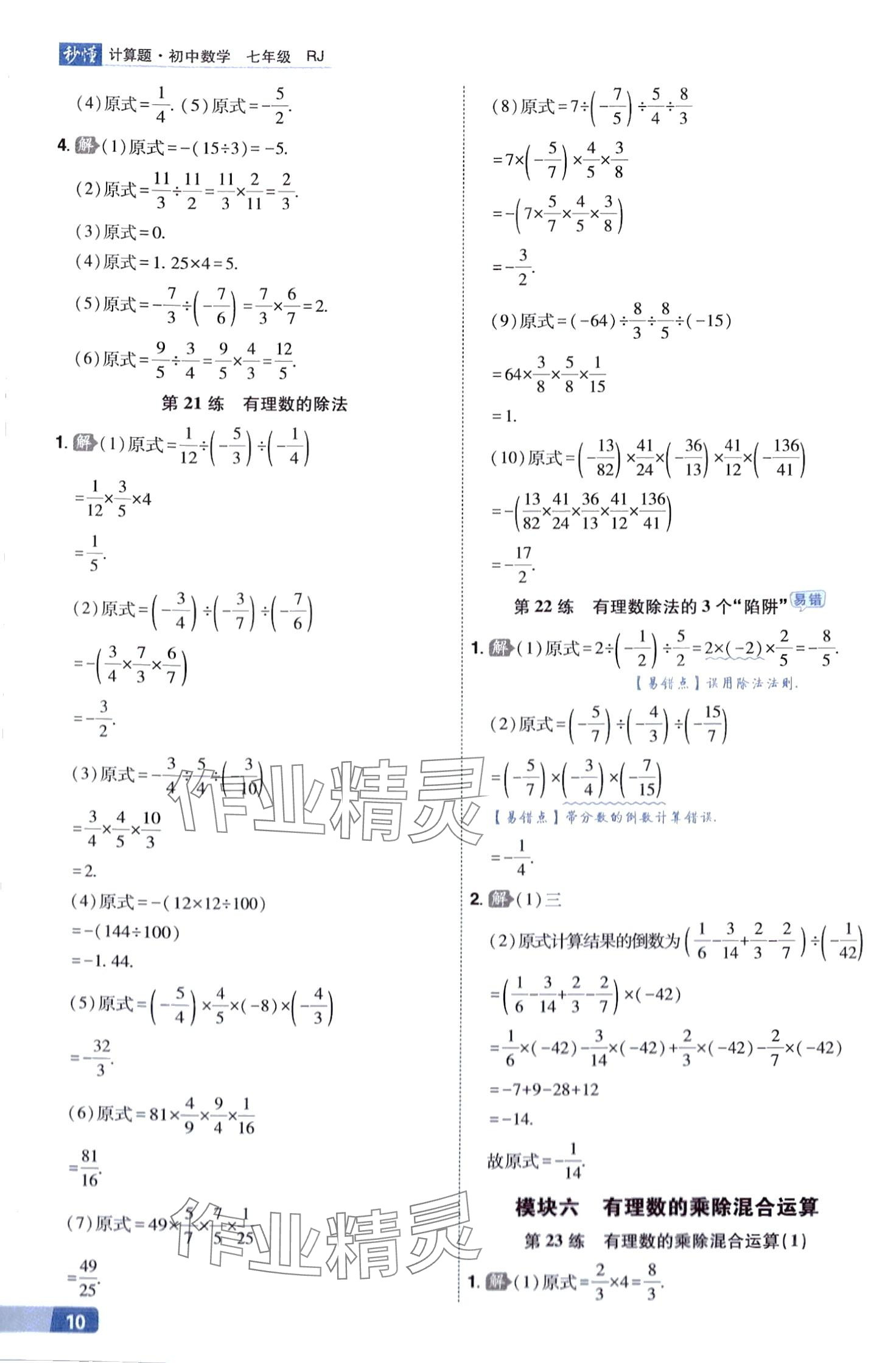 2024年秒懂计算题七年级数学下册人教版 第10页