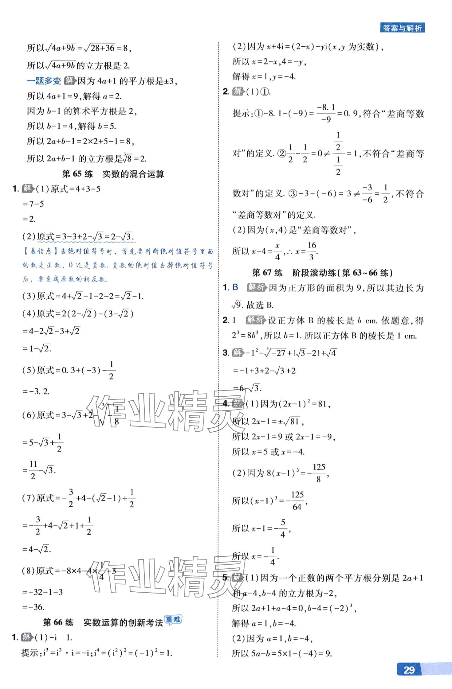 注:目前有些书本章节名称可能整理的还不是很完善,但都是按照顺序排列的,请同学们按照顺序仔细查找。练习册 2024年秒懂计算题七年级数学下册人教版 答案主要是用来给同学们做完题方便对答案用的,请勿直接抄袭。