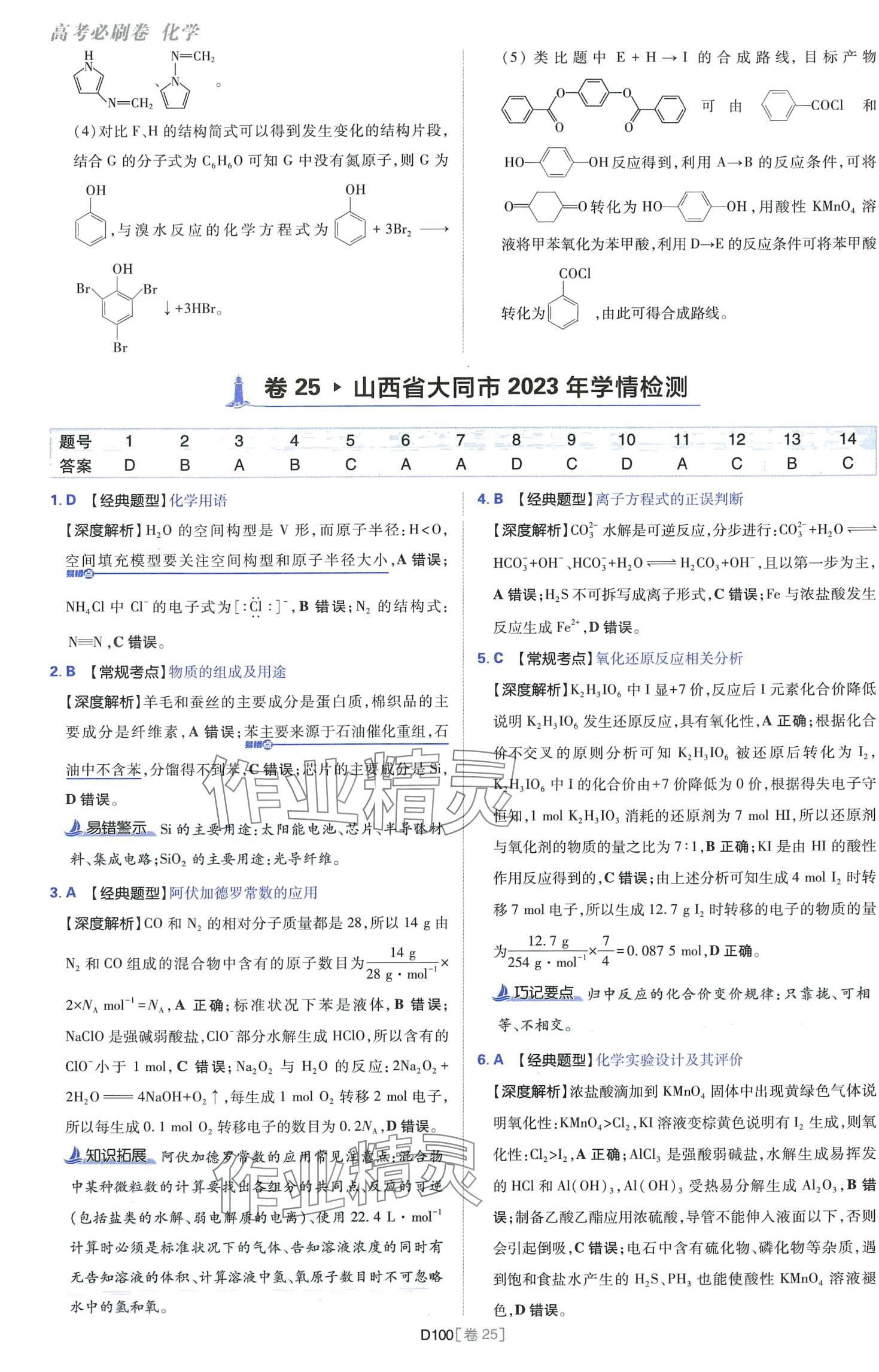 注:目前有些书本章节名称可能整理的还不是很完善,但都是按照顺序排列的,请同学们按照顺序仔细查找。练习册 2024年高考必刷卷开明出版社高中化学通用版 答案主要是用来给同学们做完题方便对答案用的,请勿直接抄袭。