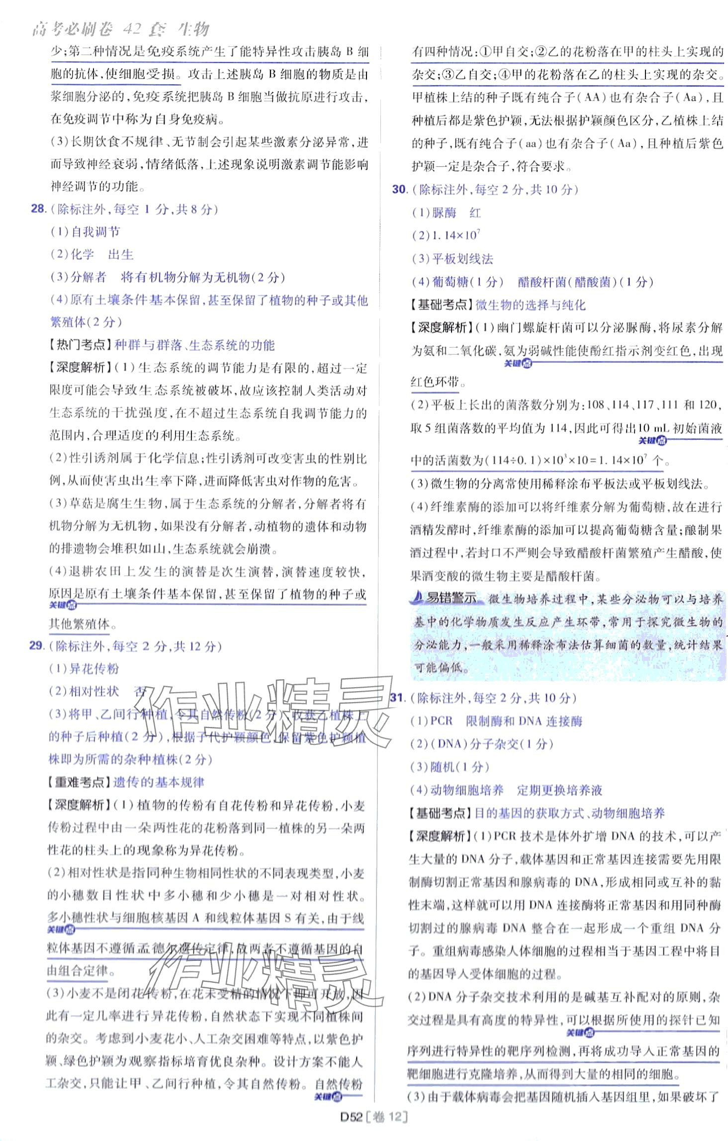 注:目前有些书本章节名称可能整理的还不是很完善,但都是按照顺序排列的,请同学们按照顺序仔细查找。练习册 2024年高考必刷卷开明出版社高中生物通用版 答案主要是用来给同学们做完题方便对答案用的,请勿直接抄袭。