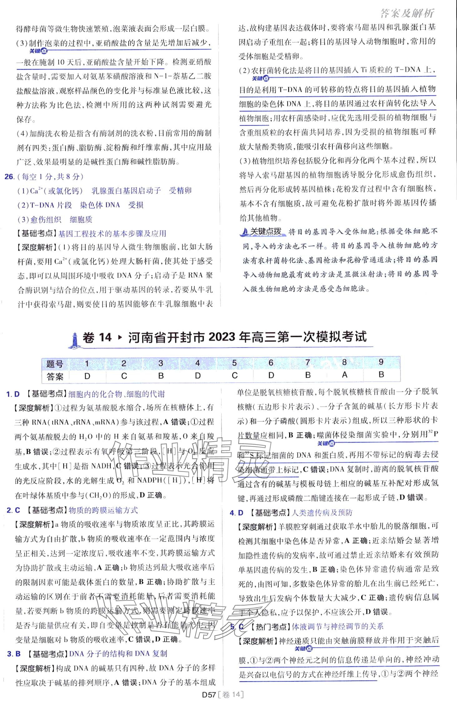 注:目前有些书本章节名称可能整理的还不是很完善,但都是按照顺序排列的,请同学们按照顺序仔细查找。练习册 2024年高考必刷卷开明出版社高中生物通用版 答案主要是用来给同学们做完题方便对答案用的,请勿直接抄袭。