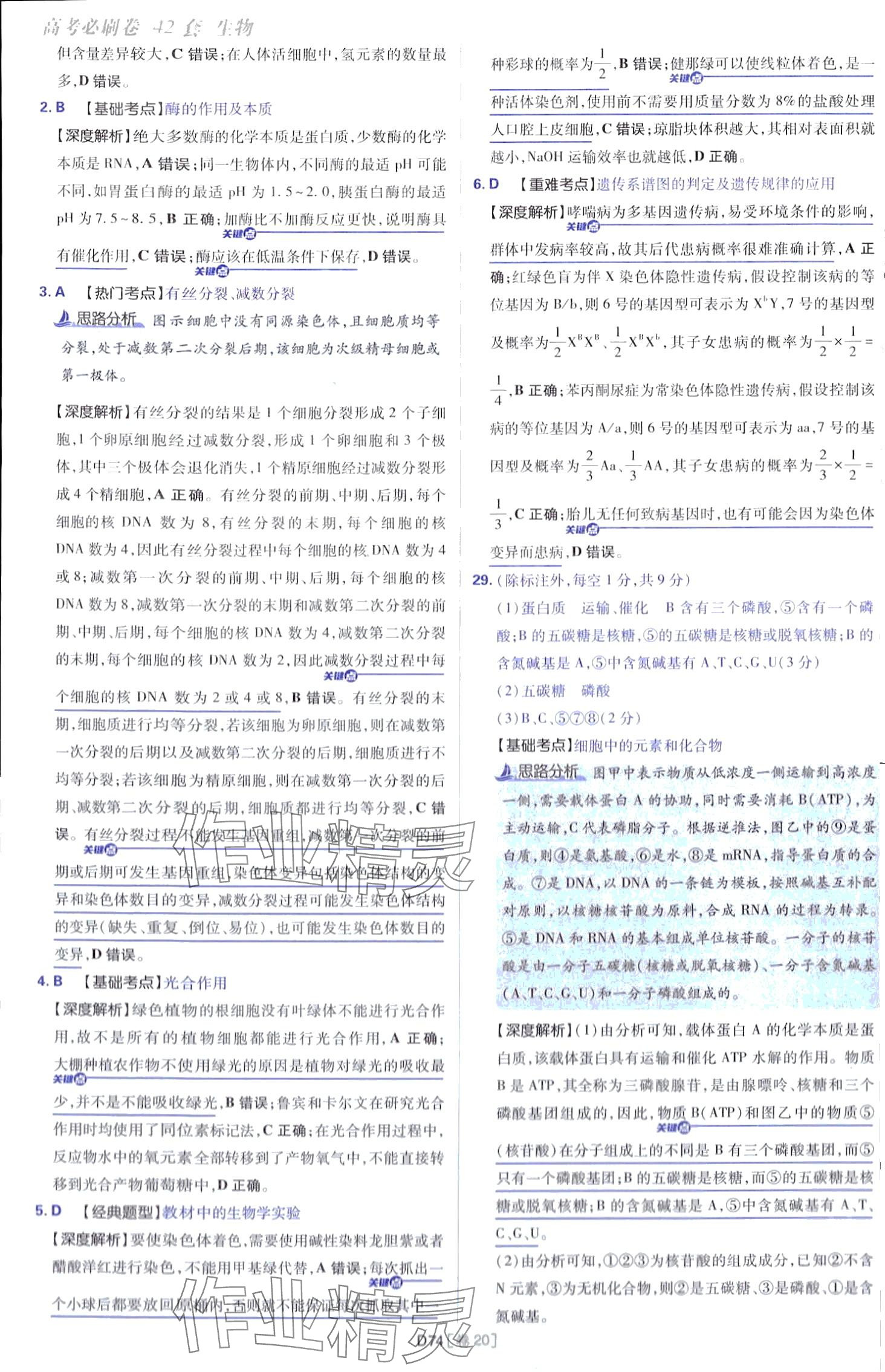 注:目前有些书本章节名称可能整理的还不是很完善,但都是按照顺序排列的,请同学们按照顺序仔细查找。练习册 2024年高考必刷卷开明出版社高中生物通用版 答案主要是用来给同学们做完题方便对答案用的,请勿直接抄袭。