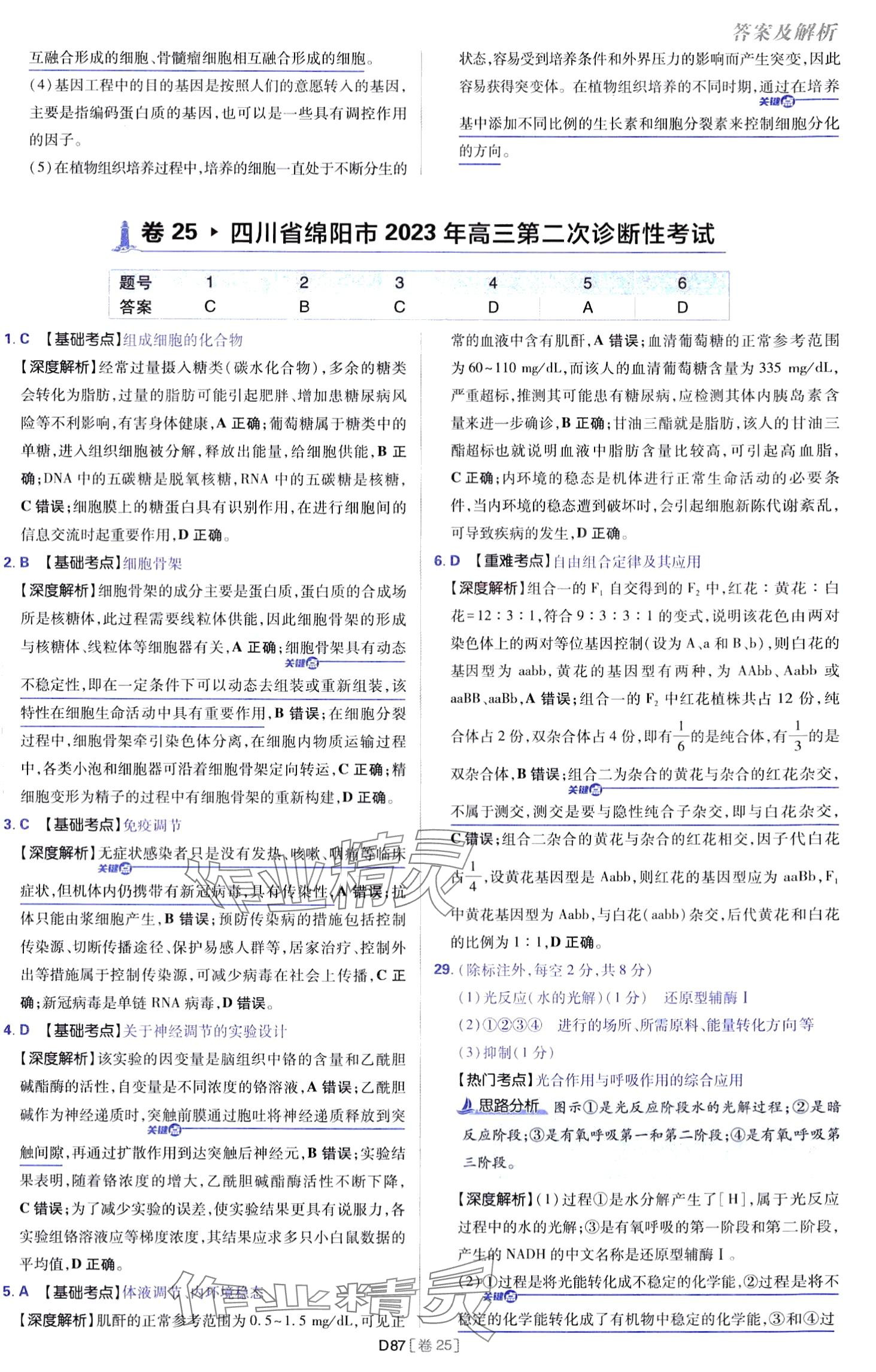 注:目前有些书本章节名称可能整理的还不是很完善,但都是按照顺序排列的,请同学们按照顺序仔细查找。练习册 2024年高考必刷卷开明出版社高中生物通用版 答案主要是用来给同学们做完题方便对答案用的,请勿直接抄袭。