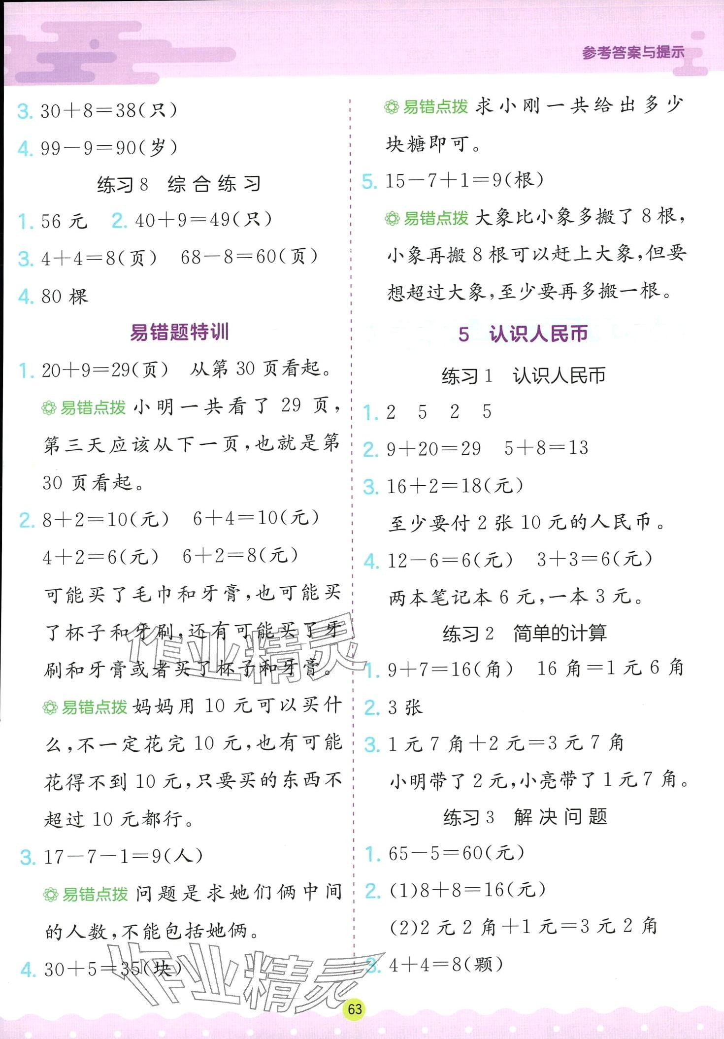 注:目前有些书本章节名称可能整理的还不是很完善,但都是按照顺序排列的,请同学们按照顺序仔细查找。练习册 2024年春雨教育解题高手一年级数学人教版 答案主要是用来给同学们做完题方便对答案用的,请勿直接抄袭。