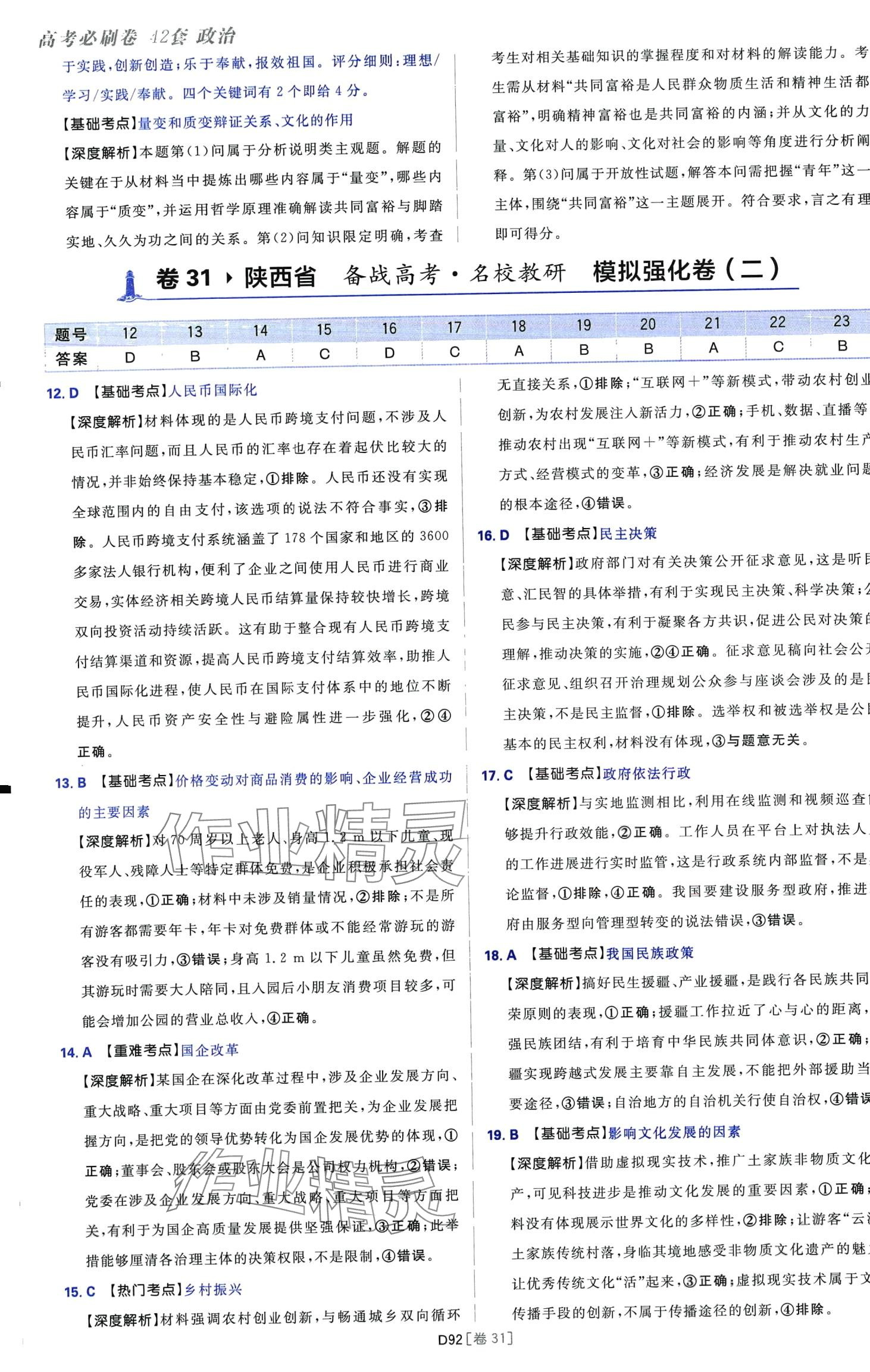 注:目前有些书本章节名称可能整理的还不是很完善,但都是按照顺序排列的,请同学们按照顺序仔细查找。练习册 2024年高考必刷卷42套模拟卷汇编高中政治全册陕西、四川、内蒙古、宁夏、青海专版 答案主要是用来给同学们做完题方便对答案用的,请勿直接抄袭。