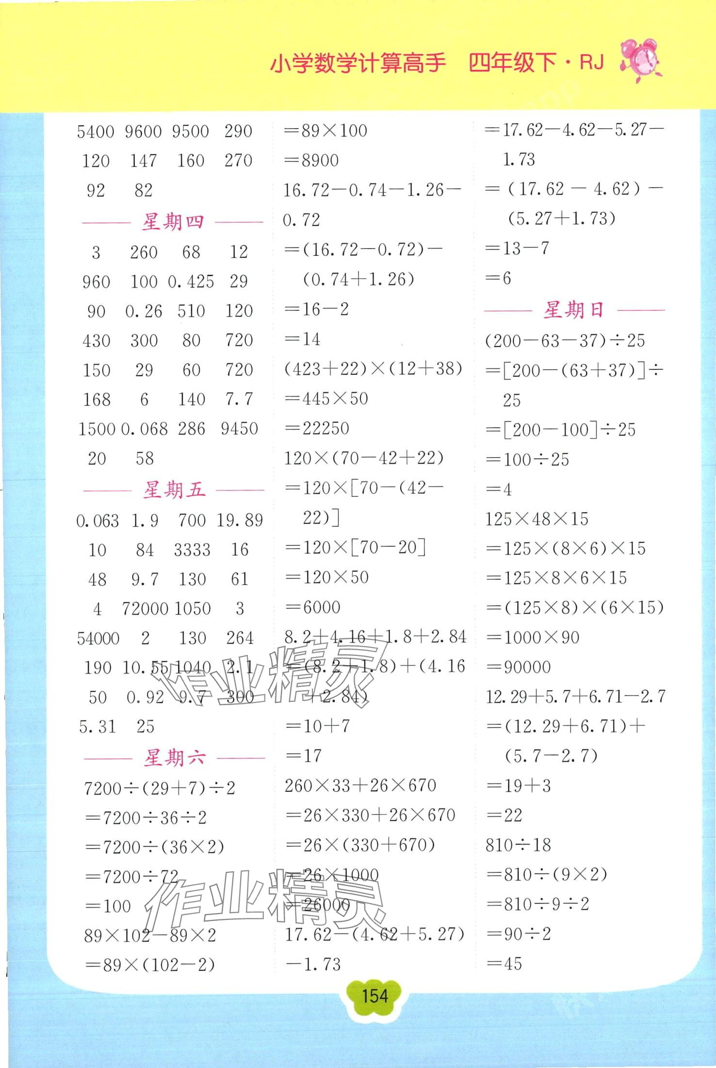 2024年超能学典小学数学计算高手四年级下册人教版