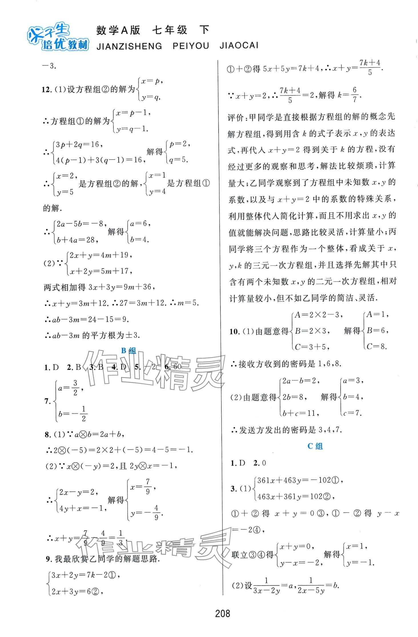 注:目前有些书本章节名称可能整理的还不是很完善,但都是按照顺序排列的,请同学们按照顺序仔细查找。练习册 2024年尖子生培优教材七年级数学下册人教版A版 答案主要是用来给同学们做完题方便对答案用的,请勿直接抄袭。