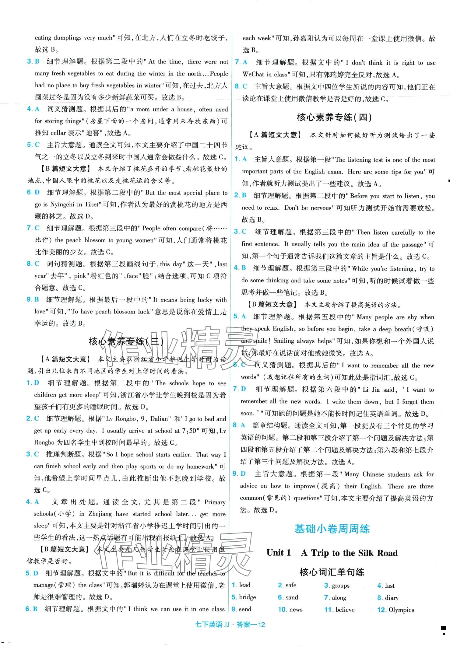 注:目前有些书本章节名称可能整理的还不是很完善,但都是按照顺序排列的,请同学们按照顺序仔细查找。练习册 2024年金考卷活页题选单元双测卷七年级英语下册冀教版 答案主要是用来给同学们做完题方便对答案用的,请勿直接抄袭。