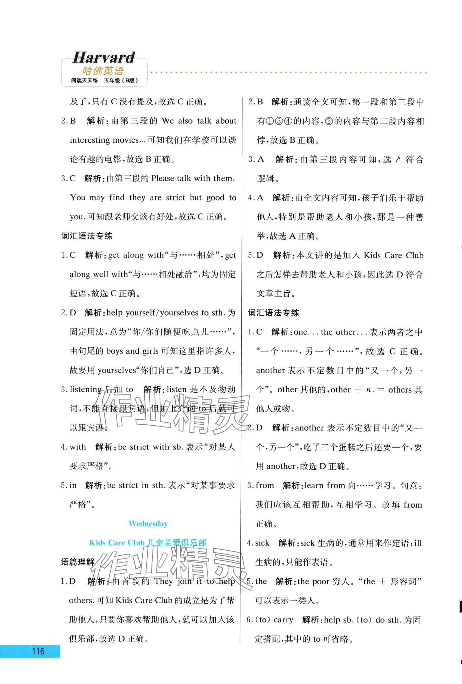 注:目前有些书本章节名称可能整理的还不是很完善,但都是按照顺序排列的,请同学们按照顺序仔细查找。练习册 2024年哈佛英语阅读天天练五年级B版 答案主要是用来给同学们做完题方便对答案用的,请勿直接抄袭。
