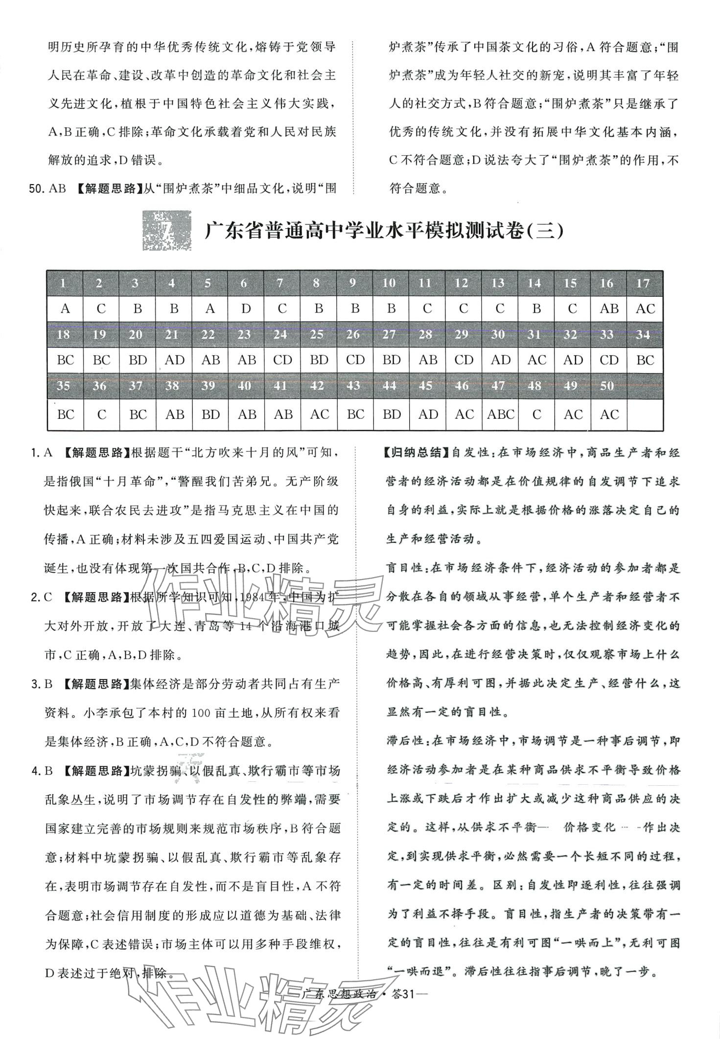 2024年天利38套学业水平考试高中道德与法治广东专版