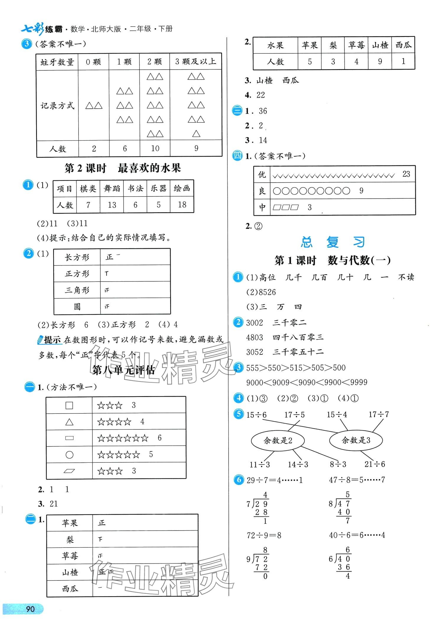 注:目前有些书本章节名称可能整理的还不是很完善,但都是按照顺序排列的,请同学们按照顺序仔细查找。练习册 2024年七彩练霸二年级数学下册北师大版 答案主要是用来给同学们做完题方便对答案用的,请勿直接抄袭。