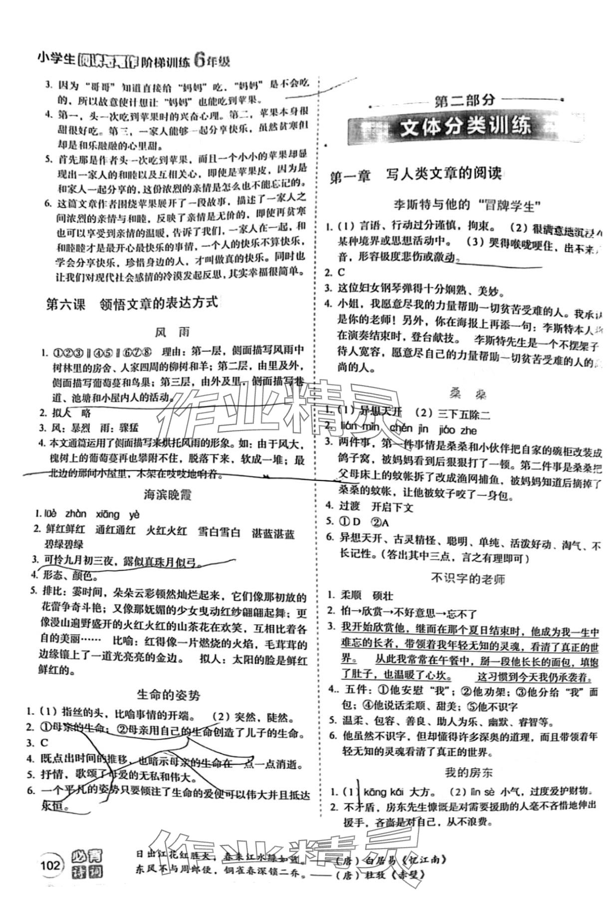 注:目前有些书本章节名称可能整理的还不是很完善,但都是按照顺序排列的,请同学们按照顺序仔细查找。练习册 2024年小学生阅读与写作阶梯训练六年级语文全一册人教版 答案主要是用来给同学们做完题方便对答案用的,请勿直接抄袭。