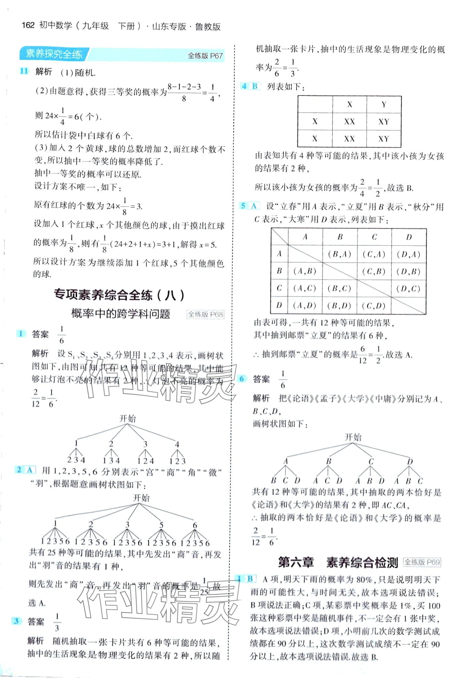 注:目前有些书本章节名称可能整理的还不是很完善,但都是按照顺序排列的,请同学们按照顺序仔细查找。练习册 2024年5年中考3年模拟九年级数学下册鲁教版山东专版 答案主要是用来给同学们做完题方便对答案用的,请勿直接抄袭。