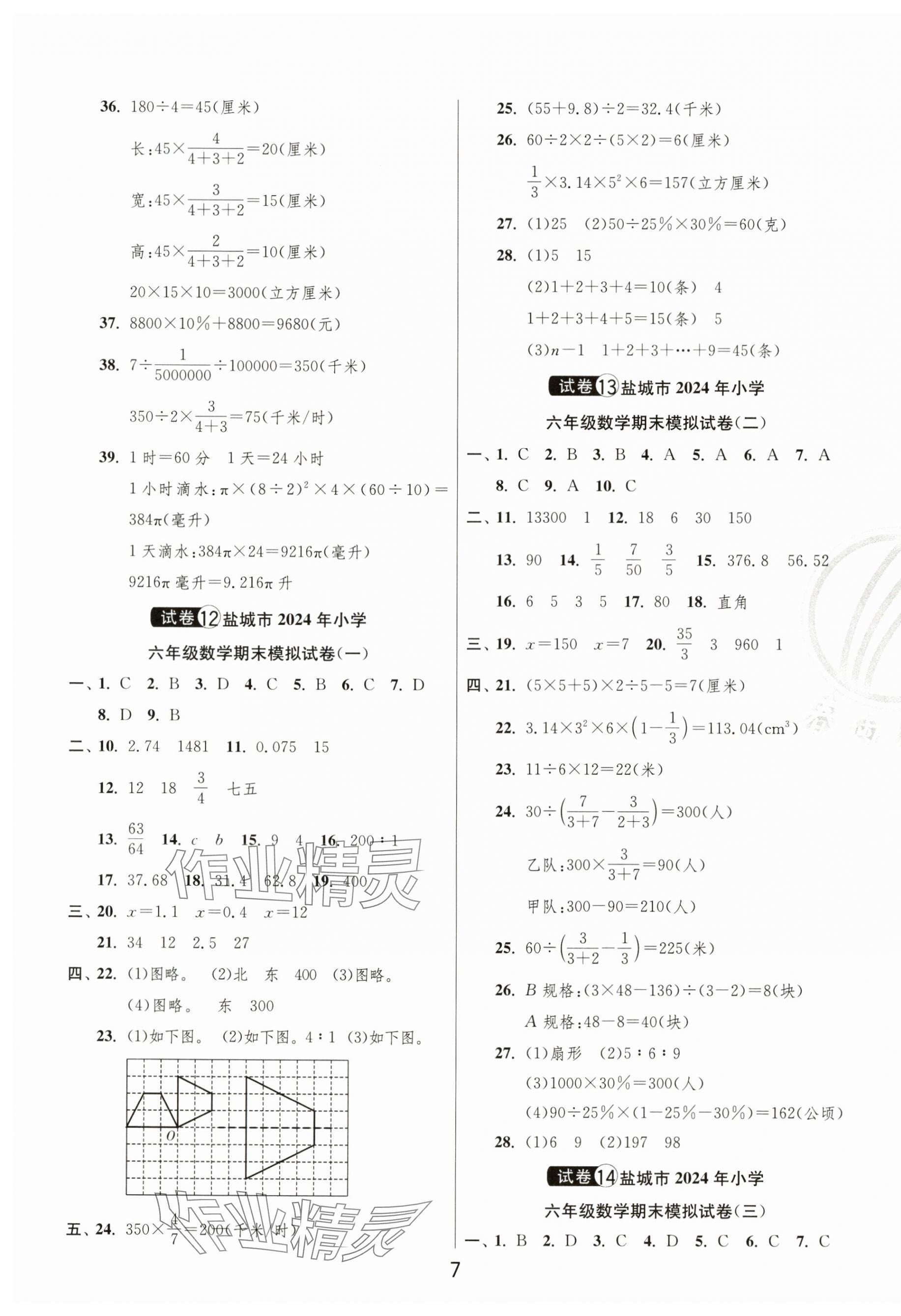 2024年考必胜小学毕业升学考试试卷精选六年级数学盐城专版