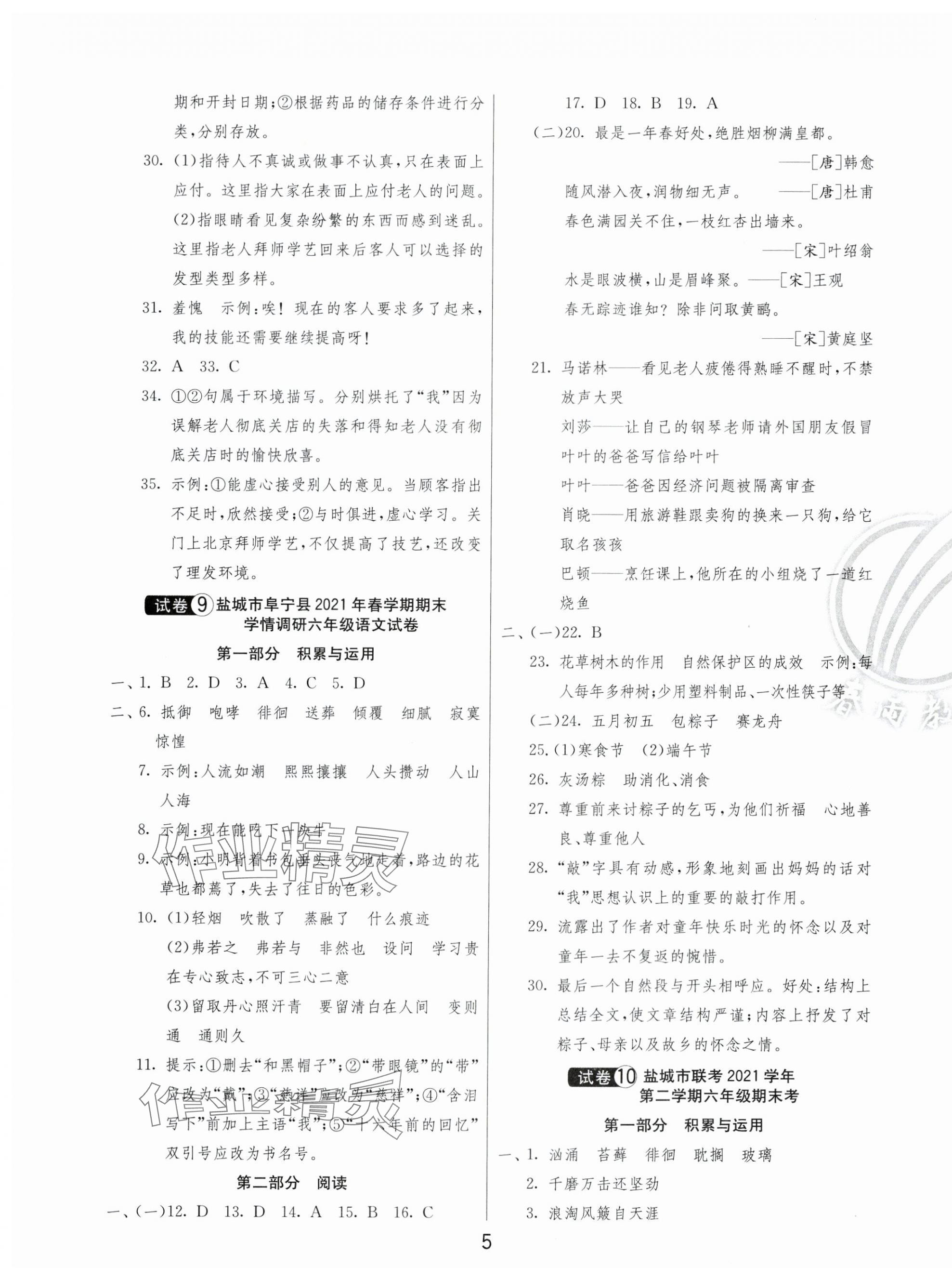 注:目前有些书本章节名称可能整理的还不是很完善,但都是按照顺序排列的,请同学们按照顺序仔细查找。练习册 2024年考必胜盐城市小学毕业升学考试试卷精选语文 答案主要是用来给同学们做完题方便对答案用的,请勿直接抄袭。