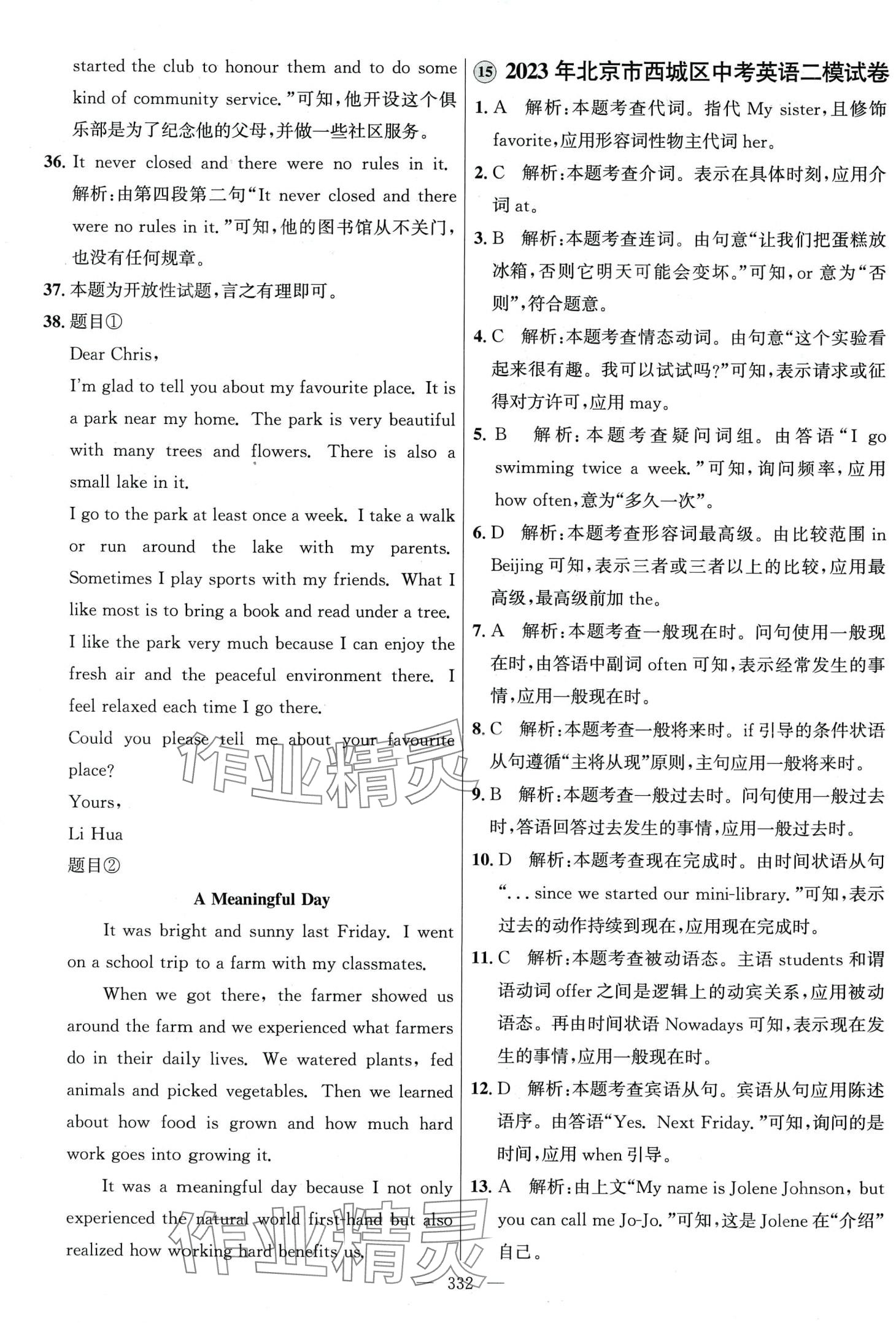 注:目前有些书本章节名称可能整理的还不是很完善,但都是按照顺序排列的,请同学们按照顺序仔细查找。练习册 2024年北京市各区模拟及真题精选英语中考北京专版 答案主要是用来给同学们做完题方便对答案用的,请勿直接抄袭。