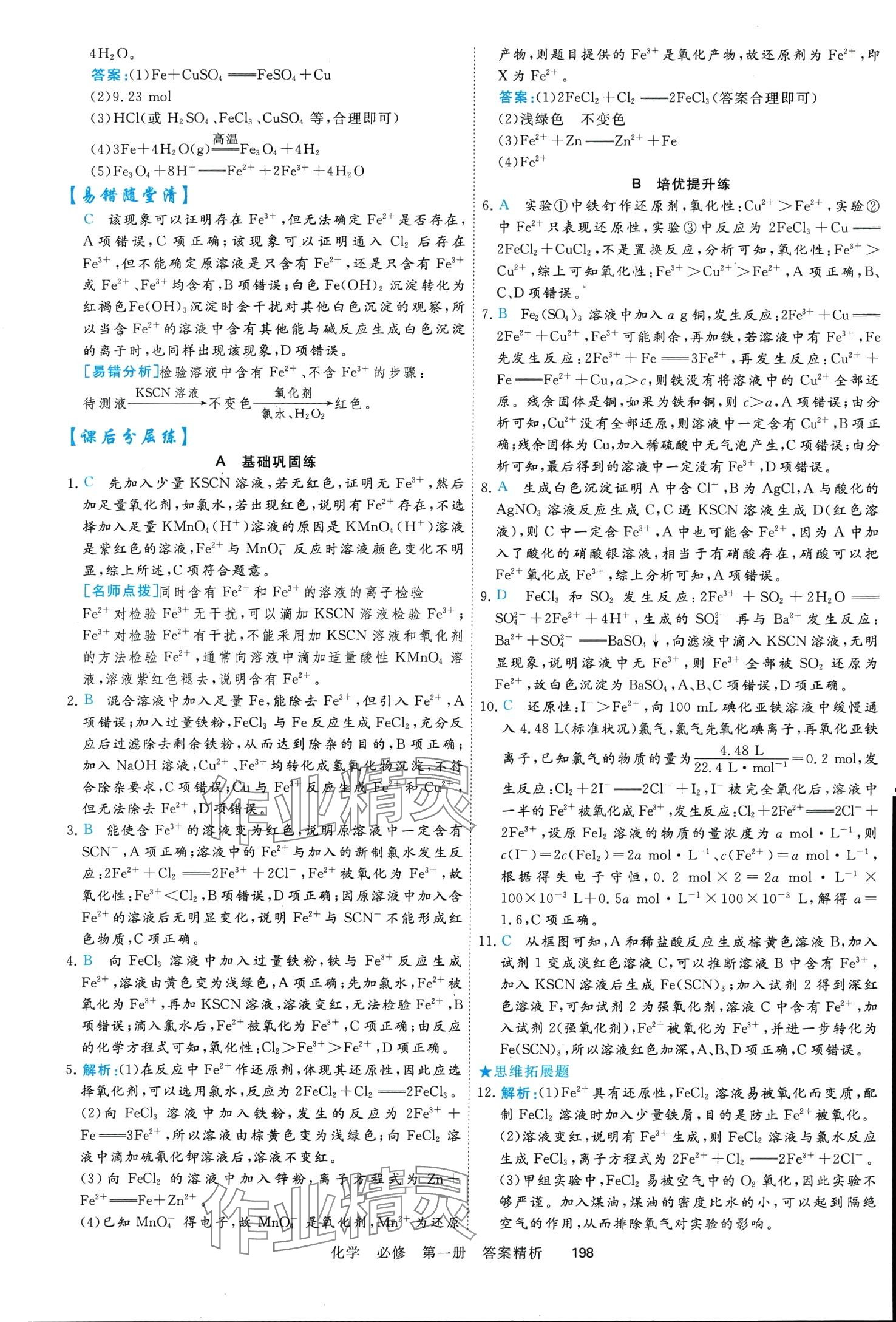 注:目前有些书本章节名称可能整理的还不是很完善,但都是按照顺序排列的,请同学们按照顺序仔细查找。练习册 2024年课时周测月考高中化学必修第一册通用版 答案主要是用来给同学们做完题方便对答案用的,请勿直接抄袭。