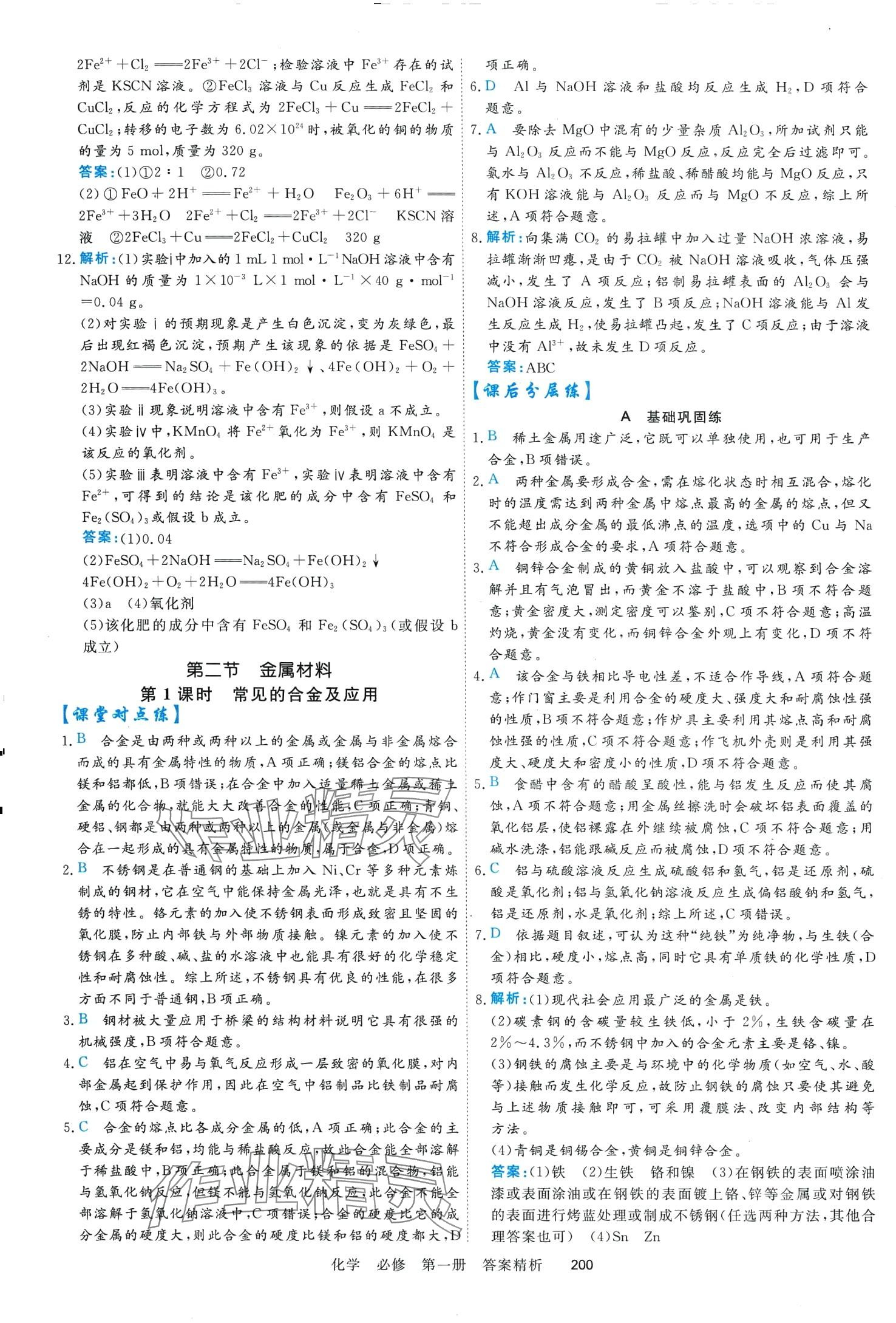 注:目前有些书本章节名称可能整理的还不是很完善,但都是按照顺序排列的,请同学们按照顺序仔细查找。练习册 2024年课时周测月考高中化学必修第一册通用版 答案主要是用来给同学们做完题方便对答案用的,请勿直接抄袭。