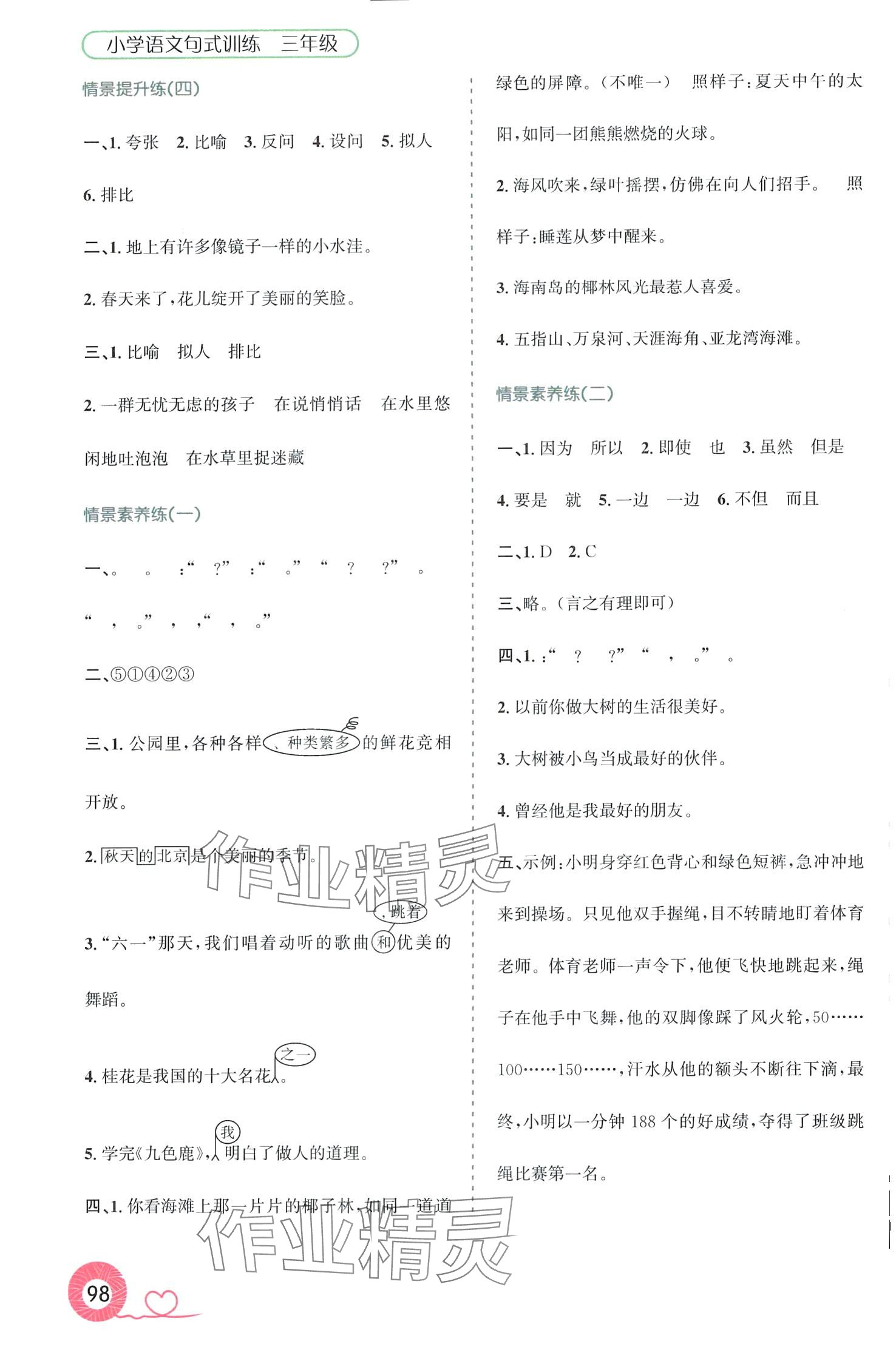 注:目前有些书本章节名称可能整理的还不是很完善,但都是按照顺序排列的,请同学们按照顺序仔细查找。练习册 2024年文科小状元句式训练三年级语文全一册人教版 答案主要是用来给同学们做完题方便对答案用的,请勿直接抄袭。