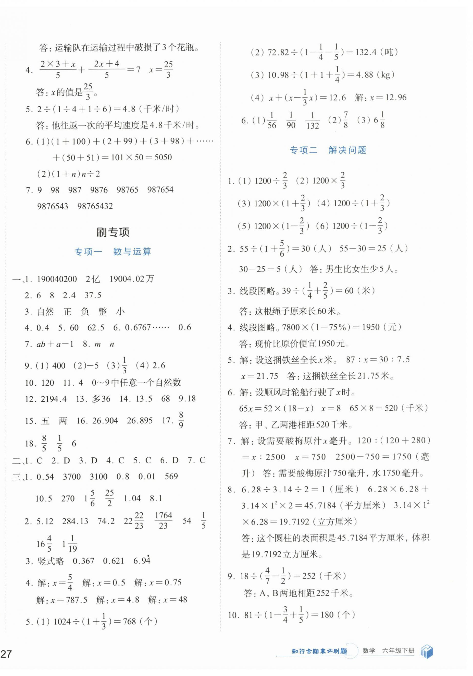 注:目前有些书本章节名称可能整理的还不是很完善,但都是按照顺序排列的,请同学们按照顺序仔细查找。练习册 2024年知行合期末必刷题六年级数学下册北师大版 答案主要是用来给同学们做完题方便对答案用的,请勿直接抄袭。