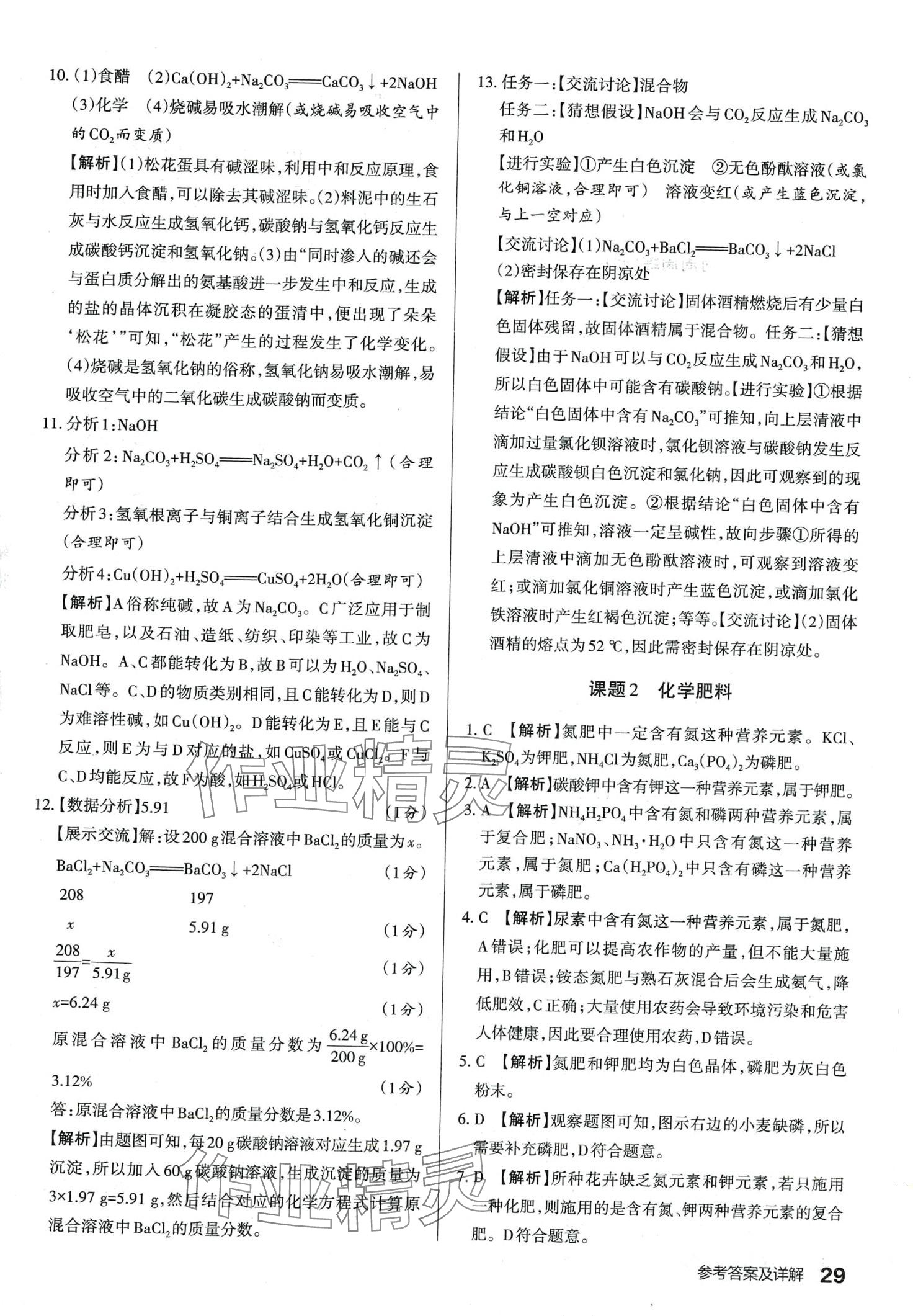注:目前有些书本章节名称可能整理的还不是很完善,但都是按照顺序排列的,请同学们按照顺序仔细查找。练习册 2024年满分训练设计九年级化学下册人教版山西专版 答案主要是用来给同学们做完题方便对答案用的,请勿直接抄袭。