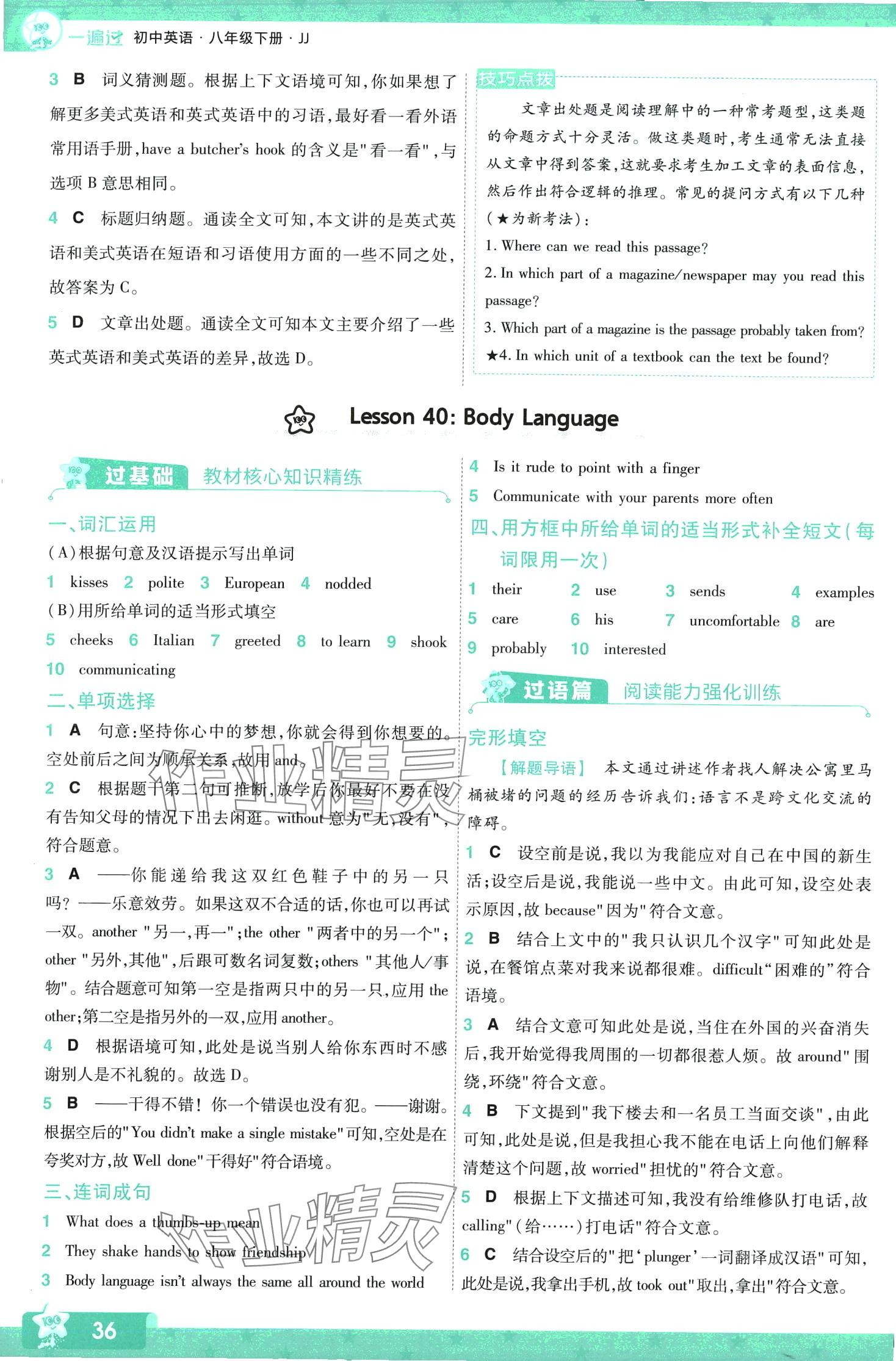 注:目前有些书本章节名称可能整理的还不是很完善,但都是按照顺序排列的,请同学们按照顺序仔细查找。练习册 2024年一遍过八年级英语下册冀教版 答案主要是用来给同学们做完题方便对答案用的,请勿直接抄袭。