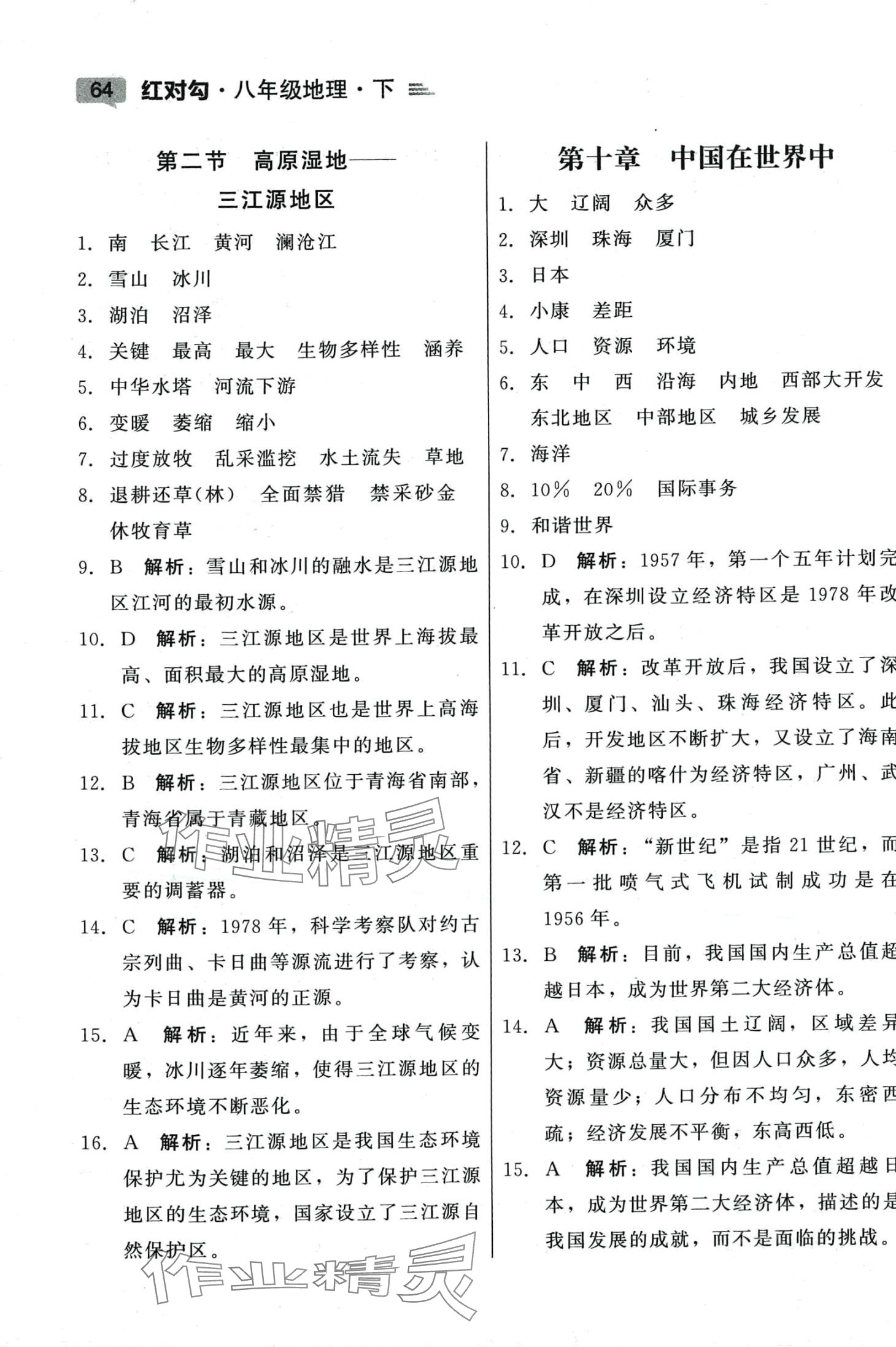 注:目前有些书本章节名称可能整理的还不是很完善,但都是按照顺序排列的,请同学们按照顺序仔细查找。练习册 2024年红对勾45分钟作业与单元评估八年级地理下册人教版 答案主要是用来给同学们做完题方便对答案用的,请勿直接抄袭。