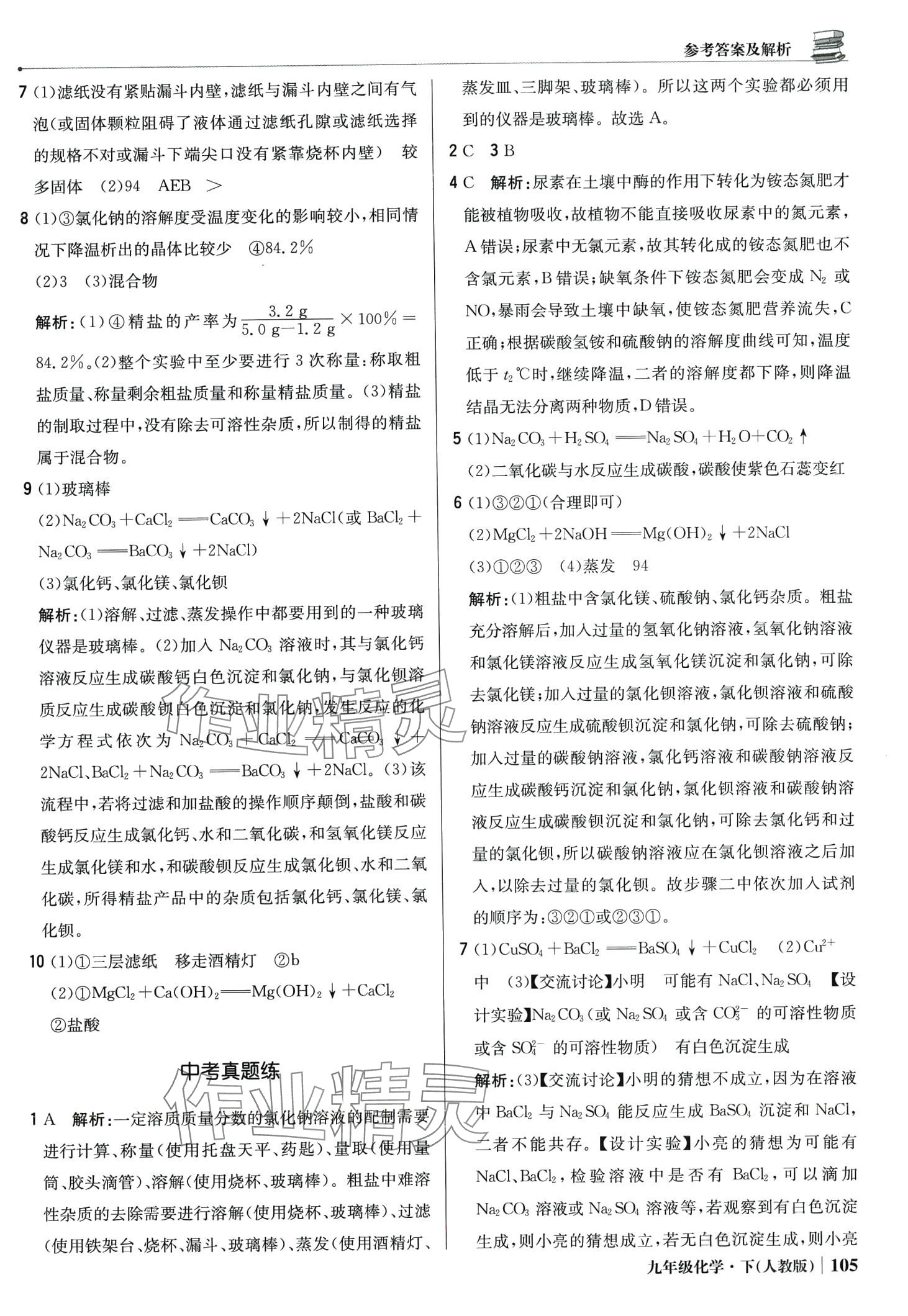 注:目前有些书本章节名称可能整理的还不是很完善,但都是按照顺序排列的,请同学们按照顺序仔细查找。练习册 2024年1加1轻巧夺冠优化训练九年级化学下册人教版 答案主要是用来给同学们做完题方便对答案用的,请勿直接抄袭。