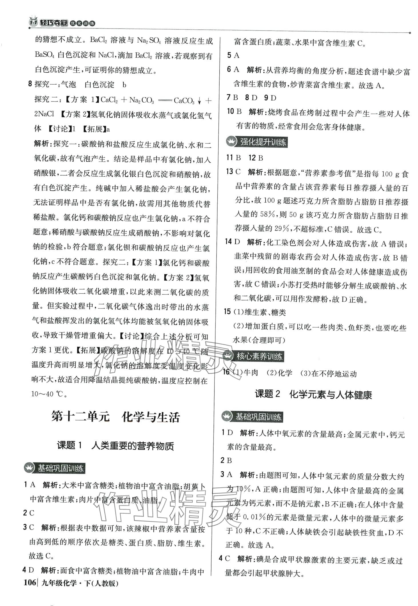 注:目前有些书本章节名称可能整理的还不是很完善,但都是按照顺序排列的,请同学们按照顺序仔细查找。练习册 2024年1加1轻巧夺冠优化训练九年级化学下册人教版 答案主要是用来给同学们做完题方便对答案用的,请勿直接抄袭。
